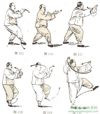 (一) 手 手眼身法步,把手摆在第一位,充分显示了它的重要性。在太极拳式所有的动作中,手的动作是最多的。而在技击中,手是击人最主要的部分。手的形状、手的动作、手的位置等合理、准确,即会起到相应的作用,反之,会影响练习和使用的效果。 杨式太极拳的手分掌、拳、勾。 1、掌:杨式太极拳的掌要求五指自然伸直,指间稍离,掌心稍窝,五个手指基本在一个平面上。掌型有如下八种: A、坐腕立掌:坐腕,手心向前。这种掌法运用较多,一般前推均用此掌,如按式的双掌;搂膝的推掌等。 B、不坐腕的立掌:不坐腕,有前立掌,手掌向前微俯。如倒撵猴式的前掌;有手心向左右的立掌;如肘麻捶式的上掌等。 C、坡掌:手背成坡形,手心斜向前下。如抱虎归山式左推掌。坡掌在拳式中运用是很多的。 D、仰掌:手心向上的掌,如高探马式的后拉掌。 E、俯掌:手心向下的掌,如白鹤亮翅式的左掌,搂膝掌等。 F、横掌:手心向前,横向摆掌,如白鹤晾翅的上掌。 G、扣掌:掌根向里微扣,如转身摆莲式开始的双掌。 H、垂掌:指尖向下,如海底针式的插掌。 不同的掌有不同的劲点,分清劲点所在之处,能有助于意到气到劲到,比如坐腕立掌的劲点在全掌,横掌在小指一侧,坡掌在掌心,俯掌在虎口或小指一侧等等。无论是练拳和推手,掌握掌的劲点是十分重要的。杨式太极拳要求手出有名,手打的方向,位置具有攻与防的意识,所以对手掌的仰俯、手的前后左右运转要讲究用意,不宜随意出手,不能象做体操那样,简单的完成动作了事。 2、拳 杨式太极拳,拳的握法是四指并拢,向手心卷屈,大指压住二指第二节,松松握住。杨式太极拳用拳的动作也很多,除太极五捶外,还有打虎式、双风贯耳、上步七星、弯弓射虎等式。 杨式太极拳用拳的类型有: A、立拳:拳眼向上或向下为立拳,如进步搬拦捶式有拳二弯弓射虎式左右拳等。 B、扣拳:拳腕稍向里扣,如双风贯耳式双拳。 C、仰拳:拳心向上,如撇身捶式有拳。 D、杨式太极拳的出拳均含意念和劲点。比如立拳一般在拳面,仰拳在拳背等。 3、勾手 杨式太极拳的勾手做法是五指并拢下垂,勾尖朝下,如单鞭式右直勾手。勾手的劲点在腕根。 4、手的动作杨式太极拳手的动作非常丰富,无式非手,概括起来大体有:掤、捋、挤、按、采、?、搂、搬、拦、封、抱、撇、迭、云、探、托、分、贯等。所有手的动作都有它的实际练习内容,都须贯注意念,掌握劲点所在之处。比如掤手,意念和劲点在挠骨一侧。捋的劲点在左手背和右手腕根小指一侧,挤的意念和劲点在有腕、小臂外侧,左手心。按的意念和劲点在双手手掌,其它不一一赘述。 (二) 眼 杨式太极拳十分讲究眼法。相传杨公澄甫与人推手或交手,发劲时眼向对方一看,对方受力则向他眼看的方向跌出。从杨少侯遗像看,他的双目似有精光射出,这是长期练习眼法及内气贯注充盈的结果。杨公澄甫说:“目光虽然向前平视,有时当随身法而转移,其视线虽属空虚亦为变化中一紧要之动作,而补身法之不足也。” 杨式太极拳对眼法的要求是: l、眼向前平视。一般情况下,眼是向前平视的;通过前面的手向前看去,关顾到手,但不死看?手。眼也有向前下看的,要根据具体拳式具体的主手动作具体确定眼看的方向。2、眼神处于动态之中,眼转动的原则随身法。身动眼随,身向那个方向,眼向那个方向望去,太极拳的运行是不断前进后退左右转动的,而前进后退,左转右旋均靠腰身带转,眼的左顾右盼需随胺身的转动而转动。3、眼与意一致。眼是心之苗目,心有所思,眼有所注,眼与动作不合即内外也不合,眼法在推手中起到重要的作用,需注意对方的上中下部,密切注意对方的顺背,在动态中抓住有利时机使对方处于背境。4、眼法自然。运用眼时不瞪眼、不闭眼,精神内含。眼神的正确运用与虚灵顶劲有关,虚灵顶劲,精神能提起,则眼自然有神。 (三) 身 杨式太极拳的身法在拳中起决定作用,身法的身在这里是指人的中部,即从肩背至胯部。从生理学上说,身是五脏六腑所在之处,包括肩、背、胸、腹、脊、腰、胯等重要部位,传统理论所提出的尾闾中正、含胸拔背、气沉丹田、松腰胯、敛臀、吊裆,均针对中部要求而言的。对于这些要点,杨家先辈们已有详尽的论说,这里不再重复。这里重点谈身法中的腰的运用。杨式太极拳传统拳论中说到腰为轴,为主宰:刻刻留心在腰间。要求“腰顶穷研生不已”。腰的重要性普遍为世人所公认,以致武术界有太极腰、八卦掌之说。但要把腰练到拳的动作上,这就不是一件容易的事。杨式太极拳的动作要求腰带手脚,一般手脚不妄动,少动,靠腰带动。这种练法不但练架子能有最佳的健身效果,更主要的是在提高防身技击水平方面有良好的效果。 杨式太极拳要本手一般只上下转换移动,腰的转动带动手的转动,比如云手,是典型的腰带手运转的拳式。腰带脚也一样。虚步的前脚掌一般没有独立的动作,靠腰去带转。总之,腰带脚、手、身、头等。腰一动则全身皆动,腰一转全身皆转,当然这也不是绝对的,个别动作腰带主手转动,另一手向另一方向转动,但这种情况不多。杨公澄甫的《太极拳使用法》书中说:“腰如车轴四肢如车轮,如腰不能作车轴,四肢不能动转;自己要想车轴转,可多浇油腰轴油满方好,用意细细体会自得之,勿须教也。”本书关于架式练法文字说明把说明腰的动作放在首要位