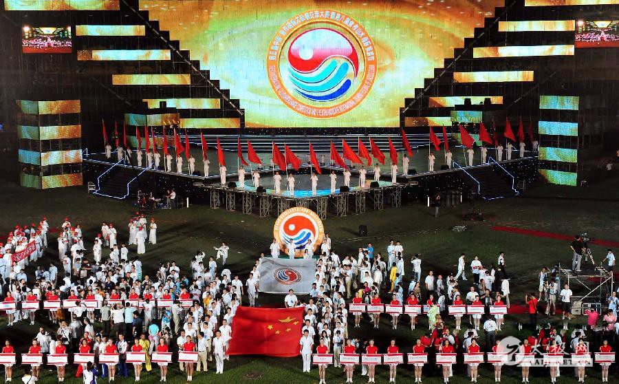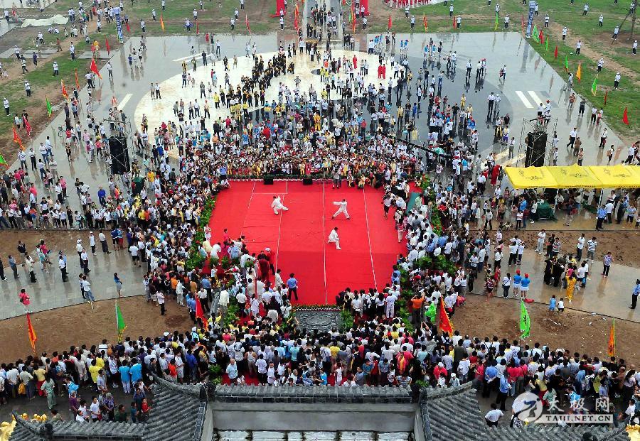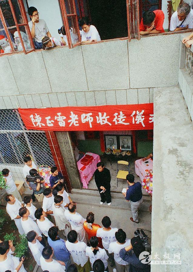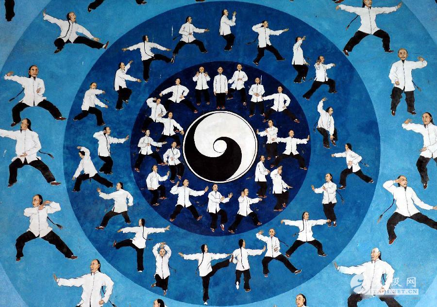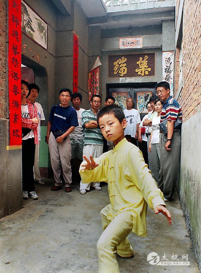 绘制在陈家沟村太极拳祖祠内壁上的太极拳谱图(2009年8月21日摄)。 陈氏太极拳嫡宗传人、著名太极拳师陈正雷在陈家沟村的家中举行收徒仪式(1999年5月11日摄)。 来自国内各地的太极拳爱好者在陈家沟村的太极拳祖祠内参观(2009年8月21日摄)。 年过七旬的陈氏太极拳大师陈庆州在演练“太极球”(2006年1月25日摄)。 在陈家沟村的一家农户门外,一位小学生在演练陈式太极拳(2000年8月24日摄)。 河南陈氏太极拳协会会长、陈氏太极拳嫡宗传人陈小旺为游客演练传统陈氏太极拳(1998年10月13日摄)。 在陈家沟村的麦地里,一位来自美国的太极拳爱好者在习练陈式太极拳(2000年3月24日摄)。 中外太极拳爱好者聚集在陈家沟村,参加太极拳始祖陈王庭诞辰400周年纪念活动(2000年8月24日摄)。 3位太极名家在陈家沟村的中华太极文化园内为观众演练传统太极拳(2009年8月21日摄)。 位于陈家沟村的中国太极拳博物馆展厅一角(2009年8月21日摄)。 第五届中国焦作国际太极拳交流大赛在河南省焦作市举行(2009年8月20日摄)。 |