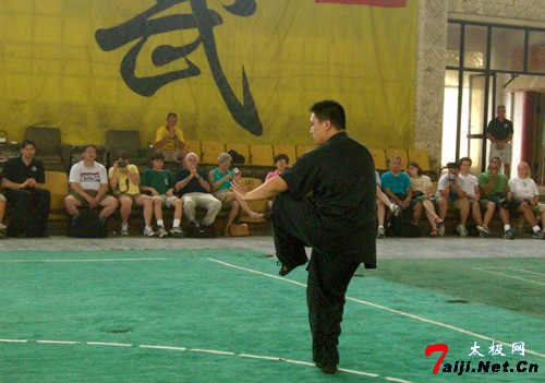 在王西安大师的赛前辅导班,这些肤色不同、语言不同、身份各异的外国人练起太极拳来格外谦逊刻苦,没有空调的练功室,每个人都汗流浃背,一练就是几个小时。第一次来参加“两赛一节”的戴维更是尤为珍惜这次陈家沟之行,每天不离大师左右,虚心请教。戴维系美国一家企业的老总,练太极拳已有七年的经历,为了能参加这次“两赛一节”,戴维可谓费尽心机,不仅提前几个月就安排好公司各项事宜,而且早在去年冬季就专门请王西安大师为自己编排了表演套路。他感慨地说:“2007年发生了许多人生美好的第一次,第一次看到美丽的焦作山水,第一次来到陈家沟,第一次参加比赛,比赛结束后我会继续留在温县跟从大师学拳,因为,这机遇太难得,我不会再有这么充足的时间飞到这里来了。”