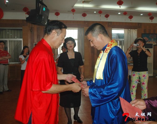 因为郑寿杰、施荣华近年来在当地积极传播太极拳,又酷爱太极文化,所以,王西安大师决定收他们两人为入室弟子,并为其举行了隆重而富有文化气息的拜师仪式。在古筝的伴奏中欣赏精彩的太极拳表演,聆听陈式太极拳的门规师训,身穿中式练功服的郑寿杰虔诚地为老师端上一杯清茶,感慨地说:“我的朋友曾问我你为什么不在北京找老师提升拳艺,我对他说,我喜欢陈家沟,喜欢这里的乡村气息和太极文化的氛围,喜欢淳朴的村子里处处听到练拳的声音。”