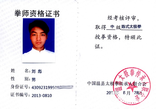 刘彪,师承王林,陈式太极拳第十三代传人