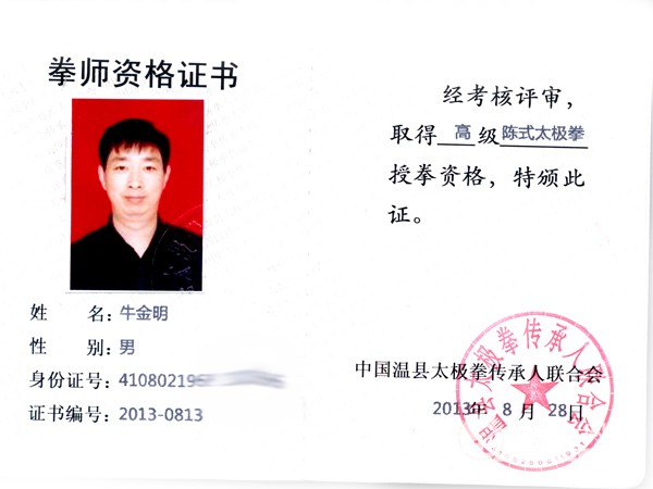 牛金明,男,师承王林,陈式太极拳第十三代