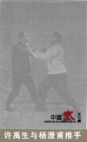 太极者,无极而生, 太,大也,至也。极者,枢纽根柢之谓。太极为天地万物之根本,而太极拳则为各拳之极至也。 无极而生者,本于无极也。此拳重在锻炼精神,运劲作势,纯任自然,不甚拘于形式。以虚无为本,而包罗万象。故曰“无极”。 然初学者究当就有形之姿势入手学习,久之着熟懂劲,融会贯通,始能入于神化之境。 按周濂溪《太极图说》“无极而太极”注云:上天之载,而声无臭,而实造化之枢纽,品橐之根柢也。故曰“无极而太极”,非太极之前复有无极也。此云“无极而生”,究有语病。 动静之机,阴阳之母也。 变易物体之位置,或动体进行之方向,曰“动”。保存或维持其固有之位置或方向,曰“静”。机者,征兆也,如《阴符经》“天发杀机”之“机”。夫动静无端,阴阳无始。太极者,其枢纽机关而已。太极拳当行功时,中心泰然,抱元守一,未尝不静。及其静也,神明不测,有触即发,未尝无动。于动时存静意,于静中寓动机。一动一静,互为其根,合乎自然。此太极拳术之所以妙也。 万物之生也,负阴而抱阳,莫不有太极。有太极斯有两仪,故太极为阴阳之母。太极拳着着势势均含一、O、环形。其动而阳,静而阴,及刚柔进退等,均与易理无异。故得假借易理以说明之,非强为附会也。 中国旧日学说,诸凡事物均以阴阳喻之。故阴阳无定位。太极拳之为阴阳亦然。如拳势之动者为阳,静者为阴;出手为阳,收手为阴;进步为阳,退步为阴;刚劲为阳,柔劲为阴;发劲为阳,收敛为阴;粘劲为阳,走劲为阴;手足关节之伸为阳,曲为阴;分为阳,合为阴;开展为阳,收敛为阴;身躯之仰为阳,俯为阴;升为阳,降为阴。凡此所喻,无论遇如何变化,内皆含一、O、环形。故动静不同时,阴阳不同位,而太极无不在焉。 动之则分,静之则合, 动,变动也。动之则分阴分阳,两仪立焉。静之则冲漠无征,而阴阳之理已悉具其中矣。太极拳术当行功时,其各姿势,一动一静相间。其拳势之动者,前后左右上下,均有阴阳虚实可循,故曰“动之则分”。其静的姿势,虽无痕迹可指,然阴阳虚实已见其中,故曰“静之则合”。若作运劲解,则太极之阳变阴合,即物理力学分力、合力之理也。太极拳术遇敌欲制我时,则当分截其劲为二,使敌力不能直达我身。(背劲)所谓“动之则分”是也。若将敌粘起用提劲,阳之变也。及起,须静以定之使不得动,或敌劲落空。稍静即发,利用合劲,阴之合也。倘敌欲发我,则应中心坦然,审然应机,静以俟之,微动即应,所谓“后人发先人至”也。 夫道一而已矣。当混沌未判,洪蒙未辟,本无动静,何有阴阳?故以虚为本者,无不合道。天地如是。太极如是。太极拳习至极精处,亦如是也。然此指先天而言,指习拳术功深进道者而言。初学之士,骤难语此也。及乾坤既定,两仪攸分,有阴阳斯有动静,则言太极者,不能不就有形象者以讲求之。太极拳之分合动静,合乎阴阳。如动势须求开展,运劲务明虚实。刚则化之,故曰“分”。柔则守之,故曰“合”。坤在静中求动,无为始而有为终,必须伏气。乾则动中求静,有为先而无为了,只要还虚。盖万物之理,以虚而受,以静而成。天地从虚中立极,静中运机。故混沌开而阖辟之局斯立,百骸固而无极之藏自主,无不从虚静中来也。重阳子曰:“此言大道之原,而功先于虚静。虚则无所不容,静则无所不应。”由是观之,习太极拳者,倘以虚静为本,则分合变化自无不如意也。 无过不及,随曲就伸。 过,逾也。不及,未至也。随,无逆也。就,即之也。过与不及,皆为失中。失中则阳亢阴暌,未能有合也。太极拳于曲伸分合等处,运劲过则生顶抗等病。不及则有丢偏等病。欲求不即不离,则应随之而曲,就之而伸。随机应变,毋固毋我。因力于敌,以中为主,而粘、黏、连、随以就之,自无不合。所谓“君子而时中也”。案初学此拳者,每失之过,迨稍懂劲,则每失之不及。学者宜审慎之。 人刚我柔谓之走,我顺人背谓之粘。 人者,敌也。刚指刚强有为而言。柔者,无抵抗也。走者,化也。柔以承之,变化敌力之方向,不为所制,故曰“走”。顺者,自由便利也。背者,不自由不便利也。粘者,取制敌人之力也。遇敌施刚力时,我惟顺应其势,取而制之,使俯就我之范围,如以胶着物,故曰“粘”。太极拳常以小力敌大力,无力御有力。弱胜强、柔胜刚,为其主旨。但以常理言之,小固不可以敌大,弱固不可以胜强,柔固难期以制刚。然云“敌之”、“胜之”、“制之”者,必有其所以制胜之理在。盖敌力须加吾身方生效力,苟御制得道,趁其用刚发动之始,审机应变,采取擒获,使还制其身。则我虽弱,常居制人地位。敌虽强,常居被制地位,难于自由发展,力虽巨奚益?!此老聃“齿敝舌存”之说也,颇合太极拳刚柔之义。然非好学深思之士,未足以语此。 动急则急应,动缓则缓随。虽变化万端而理为一贯。 此言己动作之迟速,当随敌动作迟速之程度而异。但欲识敌之迟速程度,须先体察敌力之动机,方能因应咸宜。何谓动机?周濂溪《通书》有云,动而未形有无之间者曰“机”。又曰:机微故幽,难识如此。设非功深,不易知也。然苟得其机,敌虽变化万端,由一本而万殊。而我则执两用中,扼万殊而归一本。审机应候,无过不及,敌运动甚速,而我应付迟缓,则失之缓。敌劲尚未运到,而我先逆待,或加以催迫。则敌反有机可乘,是谓性急,其弊一也。守一以临,纯任自然,无丝毫之凝滞矣。故曰“得其一而万事毕是也”。 |