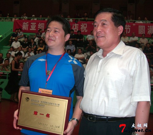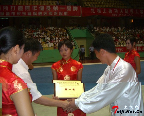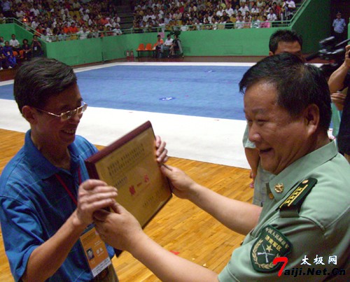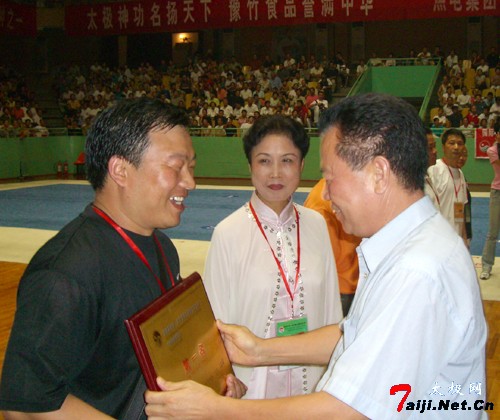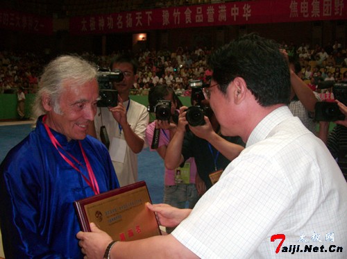焦作市市长路国贤向王西安拳法研究会法国分会颁发奖牌焦作市市委书记铁代生向香港各界文化促进会徐一杰太极培训中心颁奖