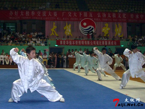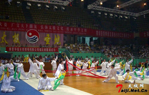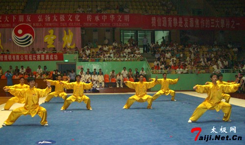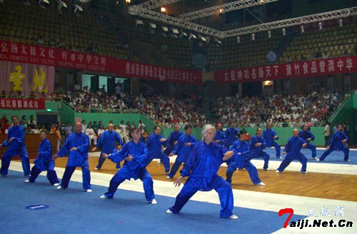 石家庄太极拳学校学生表演陈氏太极拳 陕西一队(西安萃华武馆)代表队表演陈氏小架 陈家沟太极拳馆集体表演 王西安拳法研究会法国分会表演
