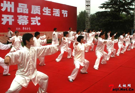 由郑州市宣传部、郑州晚报主办,联合多个行业、旨在为郑州市民创造品质生活的首届“郑州品质生活节”于今天上午在绿城广场拉开了序幕。 应主办方郑州晚报的邀请陈家沟太极拳馆派出表演团为郑州市民献上了美妙绝伦的太极拳表演,优美的旋律、精彩的演绎得到观众的阵阵掌声,一场表演结束后我们的队员已经陆续散去,却又发生了戏剧性的变化,相关领导看了表演后感觉太极拳这种流动的美感和本次活动的主题——“品质生活”很吻合,于是又应邀第二次上场并以古筝伴奏作为压轴表演。 太极拳以其博大精深的形和意折服着更多的人,愿太极拳为郑州市民的品质生活作出贡献!
