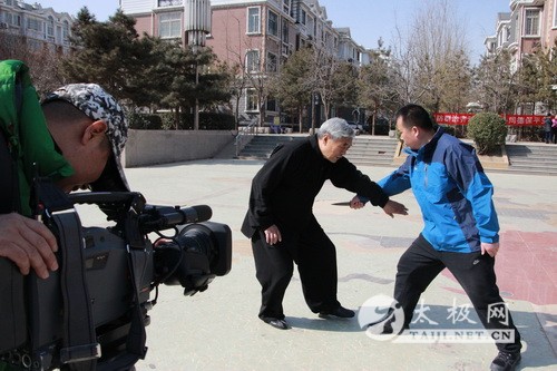 张全亮,北京大兴人。现为北京市吴式太极拳研究会常务副会长,是北京市级非物质文化遗产吴氏太极拳的传承人。 2014年3月7日,张全亮老师接受北京电视台“这里是北京”栏目的专访,从吴式太极的源流、特点、传承、发展等方面向来访的记者做了详细的解答,就吴式太极拳健身养生方面,张全亮老师以吴式太极拳37式中的部分式子为例尽行了详解,能使观众在看这档节目时,在短暂的时间里受益。张全亮老师及几位弟子应邀展示了吴式太极拳及太极剑,同时,携弟子李雪征、吴明为广大观众展示了太极拳在防身抗暴方面的技巧及技术,使人们了解到,太极拳除了有养生健身功效还能够防身御敌! 张全亮老师接受“这里是北京”栏目采访及带弟子们一起展示太极拳、剑: