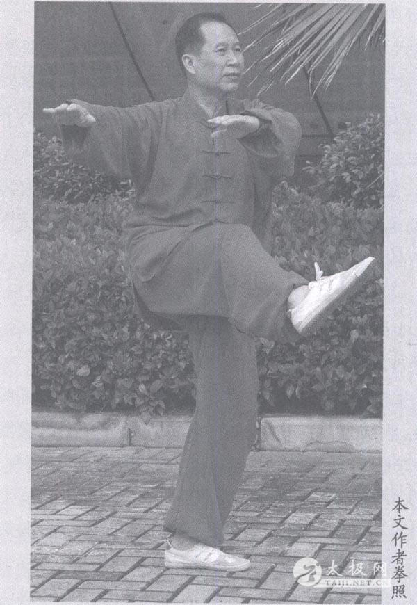 如要做到太极拳要求的“以心行意,以意行气,以气行身”和“松、静、轻、灵”,以柔化为主的运化,只靠单纯的肌肉动作是不行的,它只是一种姿势的完成和力的表现,当然这是运动的基础。如要做到柔化轻灵,就要由经络与穴位的运化来完成,也就是上述的经络平衡、完整和内外环境的反应功能。太极拳对冲、任、督、带四脉的作用较易得到解释,也较为重要。为什么要“两脚之间距与肩同宽,两脚尖微扣”呢?从技击的角度而论,两脚之问距与肩同宽,就可以进退自如;脚尖微微内扣,才能力从地起,落地生根。从养生的角度来说,只有两脚之间距与肩同宽,才能打开人体大腿内侧的三条阴经,即足太阴脾经、足少阴肾经与足厥阴肝经;“两脚尖微微内扣”,大腿外侧的三条阳经,即足太阳膀胱经、足少阳三焦经、足阳明胃经也随之开启。穴位在人体的几个大部位是起到稳定重心和重力作用的关键所在,同时还有对人体周围场势的控制和反应的作用。人体的几个大部位(头、肩、肘、手、胯、膝、足),还有胸、背、腹、腰,都应找出相应的穴位,结合生物力学的观点,形成局部重心作用,再由多个局部重心与人体总重心相结合,形成一个完整的、有机结合的运动体系,再结合人体周围形成的场势,从而形成对内外环境的防备反应体系。诚如松肩与肩井穴有关,松胸与膻中穴有关,坠肘与少海穴有关,松腰与腰俞穴有关,裹裆与会阴穴有关,松手掌与劳宫穴有关,松脚掌与涌泉穴有关。利用经络和穴位来完成太极拳的功理法要求,结合生物力学的重心、重力与支撑和作用与反作用等的力学关系,形成了一个比较完整的体系,平衡、稳定身法和步法要求,协调太极劲路和技法的运用等等。
