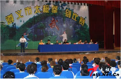 | “为奥运加油、为奥运喝彩!”9月20日—21日,全民健身与奥运同行2007年遵义市中老年人太极拳、太极剑比赛在凤冈县政府1号会议厅拉开帷幕。来自遵义各市区县10支参赛队伍约120人参加了此次比赛。本次比赛由遵义市老年体协、遵义市体育局主办,凤冈县人民政府承办。