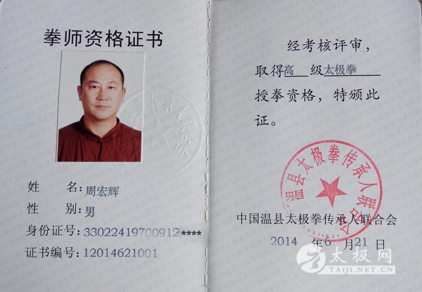 学生在全国及国际太极拳比赛多次获奖。本人在2009年3月被奉化市电视台特邀拍摄专题报道(奉城纪事》——太极拳。 周宏辉拳照 |