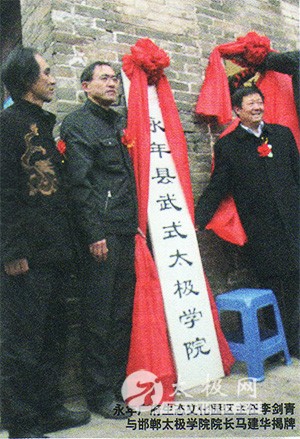 第一本是《诲艺精言》上册,内附拳械秘本。讲述的是李石泉祖父授拳经过和练功秘诀。这些内容都是用永年方言土语来描述的,未学本门拳难以理解;第二本是《诲艺精言》下册,叙述了其祖父李逊之授拳时的经过和严格家教的情形;第三本是《掘遗缀初》,内容是武李家先辈遗留下的拳谱拳论,以及“五字诀”初稿和“太极拳概要图,虚实开合图”;第四本《旧谱再缮》是将李家先贤遗留的古谱结合自己练功体会的概述,能使本门习练者更加容易掌握武李氏太极拳要领。这些宝贵资料是先师终生心血汗水的结晶。 我与武氏太极拳 常言道:一方水土,养一方人。 河北永年广府古城,这片古老而神奇的燕赵故土养育了一代又一代崇文尚武之风的豪杰,民间更有“和了永年水,都会伸伸腿”的风趣之说,这句话语不仅是对太极拳圣地永年古城的写照,也是对永年尚武之风的美好概括。在这片土地上,不仅涌现出了一代代在中华历史上光耀千古的英雄人物,而且养育出了杨露禅、武禹襄、李亦書、郝为真等一大批中华武之圣贤。 这些武林宗师都是永年人的骄傲,也是中华民族的骄傲,更是生活在这片土地上子孙后代的骄傲。特别值得庆幸的是,我家与武氏太极拳并山祖师武禹襄一脉相承的第四代嫡系传人李锦藩先生系同街邻里,和李亦畲故居北门正对。俗话说“远亲不如近邻,近邻不如对门”,这对我步入太极殿堂提供了德天独厚的便利条件,而我与恩师恰恰又在同一生产小队。 记得上个世纪七十年代,我父亲是广府西街二小队会计兼记工员,父亲与先师都是本队知识分子,关系甚好。当时我们师兄弟都称李锦藩先师为“大爷”。以前,李大爷被划分为“右派”,还戴着一顶地主的帽子,许多人都不愿与他接近,生产队里一些脏活、重活、没人干的活都推到大爷头上让他去干,如清扫街道、大搞积肥、拉两轮车掏大粪等等,这些都是我亲眼所见。我和恩师锦藩大爷在一起大搞积肥运动,锦藩大爷受尽了折磨,吃尽了苦头。就这样在田间地头休息时,锦藩大爷还偷练几下太极拳。可到了年终春节分口粮(又叫分红)时,有人就提出要扣“地主”李锦藩多少工分。当时上班累死累活干一天一个工七毛钱,但我父亲却暗暗的坚持原则,按大爷实际出工多少记工分、实际情况分红不扣工分。大爷感动得不知说啥好!人在困难时期帮助办一件好事,人会感谢一辈子的。这些事情虽过去很久了,我却留下了深刻的印象。 有一天傍晚,有人叫我去南街粮站附近学拳(我在西街住),说那里有人教拳,学拳的人挺多。到了那儿,看到粮站院子里围了许多人,有的练拳,有的练推手,有的练轩,有的练刀,有的练剑,还有的在压腿……刀光剑影,熙熙攘攘,很热闹。突然,从大街外面传来哀曲,有人跑过来说:毛主席逝世了。因此,我清楚地记得,那天是1976年9月9日。以后,父亲见我每天晩上丢下饭碗就往南街跑,就对我说:“你瞎跑个啥,咱生产队里锦藩太爷就会拳,而且是家传。改天我领你到你锦藩大爷家里给他说说。”过了几天,父亲把我领着到了锦藩大爷家,当时我是一个小孩子,到了锦藩大爷家,不敢随便走动。 锦藩大爷家里的文房四宝摆放得井井有条,看得出他老人家艰苦的生活很有次序,对一切用具非常爱惜,即使对一张写错的废纸条他也反复揣磨是否应不应丟掉。大爷问我:“建国,你为什么要学拳?学拳干什么?”我胆小,一时没有回答上来。大爷对我说:“你回去想想再来吧!”第二天,我到恩师家说:“我喜欢太极拳,想继承老祖先的东西。在学校学习成绩不太好,想在拳术上搞点成绩,弥补一下。” 恩师说:“文化学不好,太极拳更难学了,太极拳包舍着深奥、丰富的哲理。武氏太极拳是丈人拳、文明拳、文雅拳、也是之化拳,因为从武氏家族到李氏家族都是文武双修的,武禹襄就是教书秀才,李亦畲又是举人……要想练好太极拳,首先要学好文化知识才行。”我说:“以后一定听大爷的话,好好学习,您先教我几个动作招势吧!”恩师说:“教几个招势?教你一个动作你能练好就不简单了。”说罢就教我第一个动作“懒扎衣”,让我回去练,两天后我说练好了来让他看看。 几天后,我又去找老师,老师看了我的“懒扎衣”后说:“不行,再练两天吧!”又2两天,我又去找老师,练了让老师看,说:“还不行,再回去练两天。”就这样,一个动作练了很多天。老师对每一个动作要求都很严格,他说:“练拳和学写正楷书法是一个道理,每一点,每一横都要严格认真,只有写好每一点,每一横,每一竖,而后加起来才能形成一个完整的字,每一划写不好,那个字也就写不好,拳术每一个动作练不好整个套路也就练不好。” 就这样,我的一个套路要学练几个月,这里包括几个阶段:一学架子、二练架子、三改架子、四正架子、五走架子。过了一两年后,我想学练器械,老师说:“李家—拳械一理,拳架练好了,基本功上身了,器械就容易学了。李家器械套路都有拳诀,在练功前应先背诵拳诀。按歌诀去练就会主次分明,少走一些弯路。” 二十多年来,恩师将先辈祖传的系列套路传给了门内弟子,其套路包括:一路中履架、二路炮捶、三路小架、四路太极刀,五路太极剑、六路刀剑对练、七路四刀对练、八路反四刀、九路太极一路杆、十路太极二路杆、十一路二路杆对练、十二路四杆对练、十三路通杆、十四路槟杆、十五路甩杆、十六路活步推手、十七路
