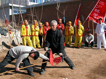 |   天津市蓟县以其山青水秀、风景秀丽赢得了天津后花园之美誉。城关镇是蓟县第一镇,位于县境中部,与河南嵩山少林武术同属一系的北少林武术,在该县的公乐亭村商氏家族中已传承到了第7代,如今村内习武者仍不乏其人。更可贵的是,在如今市场经济浪潮中,商氏家族的传人们在本不富裕的状况下,依然竭心尽力地为光大这份珍贵的地方文化遗产而习武不缀,对民间文化的发展及村民精神生活的改善起到了良好作用。近日,记者满怀好奇地走访了商氏少林武术的第6代传人--商宝良。 商氏武术沿袭少林风采 北少林寺所在地蓟县地区现存的商氏少林武术是北少林武术在蓟县的代表,其影响遍及京津及古蓟州地区。位于蓟县城关镇的公乐亭村共有村民60户,商氏一族约30户。村中商宝良家至今还留有一本祖上传下来的“武功秘籍”,据专家考证,这在我国遗留的有限武林拳谱珍本中实属珍贵。当然,秘籍在蓟县乃至其他地区还有一些版本在流传,因此,大家都是在互相研习,广为传布,造福一方。见到记者来访,热情的商宝良还特意准备了一场武术表演。在村里一处平坦的高地上,商家人轮流上台献艺:梅花拳、太和拳、八卦枪、三节棍进枪、单刀拐子进枪、对扎闪枪……,一招一式,虎虎生风,引得围观村民连番喝彩。表演者中平均年龄为25岁,最小的才6岁。据天津体院专门从事少林武术研究的高文山先生介绍,他们表演的很多招式都与河南祖庭少林寺一带的少林功夫极为相近。 据商家少林武术第6代传人、现年58岁的商宝良介绍,商氏及其传人后来成为北少林武术的社会公认代表,给蓟县的各方面带来了很深影响,在维护蓟县的安定,保家卫国,抗击外虏起到不可估量的作用。从抗击洋人侵扰到义和团运动,从抗日的冀东大暴动到解放战争、抗美援朝都融入了北少林武术传人的血和汗。可以说北少林寺不仅传出了一种武术技艺,更传播了高尚的武德、民风,延续了民族精神。 虽然在抗日战争中,北少林寺被焚毁,北少林武术并没有因此中断。目前,商氏北少林武术已经传到了第7代。从80年代中期,商宝良参加天津市传统武术比赛,并得到天津体育学院武术专业人士的重视,此后,商宝良等北少林武术传人通过不断努力,商绵辉,李开元、商绵健、周海民等一批后起之秀活跃于北少林武术的事业上。据商宝良介绍,北少林武术得到蓟县人民、政府的关爱,第6代现有10多人、第7代有20多人仍然利用农闲习武不辍。商家北少林武术分为40多种形式套路,全部套路动作做一遍需要1个小时。蓟县北少林武术的传人曾多次参加天津市及地方上的武术比赛及表演,商家子女有多人毕业于体育学院,将为发扬北少林武术不断努力。 传奇人物商仕芝 据县志记载“士芝者,字德周,蓟邑西五里公乐亭人,先籍乃辽宁铁岭人。其先人随清入关,后辗转定居于蓟地。芝公生于乾隆60年,殁于光绪六年,享寿八十余岁。公貌身躯伟岸,长眉畿覆其目慈容可掬,诚若田舍一翁也”。有一年,商仕芝的父亲见一游者流连顾盼于公乐亭的水榭亭台上,其人往来纵越于数丈阔水面,神态自如,其父十分惊异,便恳请其传授武艺给其子士芝。于是,商仕芝幼时即得武传,后苦练数年,虽武艺有成,但自觉不足,随即赴盘山北少林寺学艺,拜武僧景礼为师,尽得真传。 商仕芝出身八旗满人家庭,出师后,经人推荐入宫廷担任侍卫,因办差至河南,经人指点推荐得以到嵩山少林寺,归来后武艺更加精进。据民国的蓟县县志记载,商仕芝“授徒于城内财神庙时,以拳向井口下击,井水沸腾示其徒”功力深厚为蓟县人民传诵。县志还记载:“自城至公乐亭五里,(商仕芝)以小手指提布袋,内贮蓟钱二十四千,重二十四斤,往返来去至老犹然”。 商仕芝的武事逸事,在蓟县地区口碑极多。据商宝良回忆,1年,有山东名镖师魏长春,从北京押镖到沈阳,途径蓟州,将镖车寄放在蓟州西门处天仙宫内。对众人曰:江湖久闻商仕芝老师,是蓟州人,我将要访问他,比试武艺,以增加见闻。于是到公乐亭见商仕芝老师,出言不礼貌,商老师起初不肯比试,要求再三,两人交手,仅一回合,商仕芝老师以短招“二郎扳闸”将其制服,而没有伤着他,后来又比试大枪,没有几下,商仕芝又战胜了他,于是他要纳头拜师,商仕芝说你将镖车送到以后再来。后来魏在办完事后果然又来到公乐亭,求教半年才离去。据乡间老人讲,魏长春身高八尺,如黑铁塔一般,也是江湖上一个有名的人物。 商仕芝无子嗣,生有四女,都精通武艺,出嫁后将武艺普遍传授乡民,至今承传不绝。商仕芝除在外设场授徒外,在乡梓有得意高徒三人:族中孙辈的商布贵,周升,赵六公。由于在蓟县少林武风十分炽烈,达到空前热潮,练武防身是那个离乱年月中的一个精神支柱,也成了人们必需,据老一辈讲每到晚间,槐荫树下,坊间场内,成群接伙,演练不休,有从十几里外徒步赶来的,常年不止,求艺之诚让人感佩! 少林会绵延不断尚武精神 自少林武术在蓟县传延开后,它便以一种民族文化形式面向大众。从防身健体,到表演娱乐,特别是在蓟县这个尚武精神颇强的地区,便出现了少林武术的公众表演形式少林会。少林会的武术套路表演,至今仍散发着遗产文化的光芒吸引世人注目。历经沧桑,少林会不仅传播了武术功夫,同时也演绎了深刻的民族文化内涵。