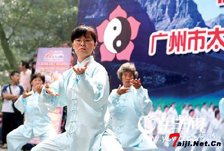 昨天上午,白云山顶公园显得格外热闹,有将近3000名太极拳协会会员、学员、教练员、辅导员参加了由广州市太极拳协会主办的“广东国旅杯”2007年广州市太极拳同仁秋季登山表演活动。太极拳同仁的精彩表演赢得了在场数千名观众的热烈掌声。