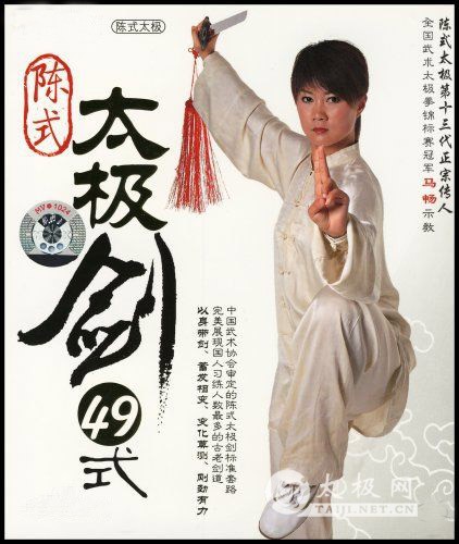 太极剑是太极拳运动的一个重要内容,它兼有太极拳和剑术两种风格特点,一方面它要象太极拳一样,表现出轻灵柔和,绵绵不断,重意不重力,同时还要表现出优美潇洒,剑法清楚,形神兼备的剑术演练风格。易学易练,运动量适中,祛病延年,健体强身。陈式太极剑四十九式是在陈式太极拳基础上做出地剑术动作,有跳跃发力,保留了最古老的陈式太极的风格。 预备式 并步站立,假设面向正南。两臂自然垂于身体两侧。左手持剑于左臂后,剑尖向上,右手握成剑指,目视前方。 要点:头颈正直,上体自然放松;剑身贴在左前臂后面,不要使剑刃触及身体。 一、太极起势 1.左脚提起向身体左侧分开半步,目视前方。 2.两臂慢慢向前平举,高于与肩平,手心向下。目视前方。 3.上体微向右转,重心移至右腿,左脚跟自然提起。同时右臂外旋收至腰间;左手摆至右前上方,目视左手。 4.右腿屈膝下蹲,左脚收至右脚内侧。同时右手向前、向上摆至右前上方,手心向上;左手收至右肩前,手心向下。目视右手。 5.上体左转,左脚向前(正东)迈步,右腿自然伸直成左弓步。同时左手持剑向下经体前摆至左髋旁,剑直立贴于左臂后;右手经耳旁响起指出。目视前方。 要点:1.两臂上举时,不要僵直用力,两臂与肩同宽,不要耸肩。 2.迈步时,上体左转,腰脊自然正直。右臂不可完全伸直;左手持剑直立于体侧,剑刃不可触及身体。 二、丁步点剑 1.身体右转,右脚向前上步,脚尖外展,两腿屈膝半蹲。左手持剑屈肘上提,经右前臂上向前传出,手心向下,右臂外旋,手心转向上,并向下、向左后摆。目视右手。 2.左脚向前上步,右脚自然伸直成左弓步。同时右剑指经头右侧向前摆至剑柄上,准备接剑。目视前方。 3.重心前移,右脚收至左脚旁,脚尖点地。同时右手接剑向前、向下点啄;左剑指扶于右腕部。目视前下方。 要点:1.步和点剑要同时完成,上体正直,臂与肩平,身体保持半蹲姿势。 2.点剑时剑尖由上向下点啄,屈腕上提,力注剑尖。 三、回身点剑 1.右脚向右后方撤步,脚尖点地。同时右臂内旋,右手持剑上举;左手剑指收于腰间。目视前方。 2.重心右移,右腿直立;左腿屈膝提起,收于体前,脚面绷平内扣。同时右手持剑经头上向右后下方点啄;左手剑指摆至左上方。目视剑尖。 要点:1.撤步与举剑同时,提膝与点剑同时。整个动作协调一致。提膝腿尽量上提,大腿贴近胸部。 2.点剑时上体稍向前倾。 四、扑步横扫 1.左脚向左后方落步;右腿屈膝下蹲成扑步。同时左臂内旋,左剑指经腰间左侧向后反穿;随之右手持剑略向下沉,并外旋使手心向上。目视剑尖。 2.上体左转,左脚尖外撇,右脚尖内扣,左腿屈膝前弓成左弓步。同时右手持剑向上、向左横扫,手心向上,停于身体左前方;左剑指经后方摆至身体左上方。目视剑尖。 要点:1.扫剑时要经过扑步,在转腰的带动下完成整个动作。 2.定式时弓步朝向斜前方,即正东偏北。右手停在左胸前,剑与弓步方向一致。顶头、松腰、松肩。 3.右手握剑要松活,保持剑身稳定。 4.扫剑时剑刃要平,由右向左横扫。 五、右左平带 1.右脚收至左脚内侧,脚尖不点地。右手持剑略向回收,手心向上,左剑指下落至右腕内侧。目视前方。 2.右脚向前迈出,脚跟着地。同时右手持剑前伸;左剑指贴右腕随之前移。目视剑尖。 3.重心前移,左腿自然伸直成右弓步;同时右臂内旋,右手剑向右、向后平带,右手心翻转向下;左剑指仍在右腕上。目视剑尖。 4.左脚收至右脚内侧,脚尖不点地。同时右手持剑略向回收;左剑指仍在右腕上。目视前方。 5.左脚向左前方迈出,脚跟着地。同时右手持剑前伸;左臂外旋,剑指收至腰间。目视剑尖。 6.左腿向前屈弓,右腿自然伸直成左弓步。同时右臂外旋,右手持剑向左、向后平带,右手心转向上;左剑指经左后方摆至左上方。目视剑尖。 要点:1.整个动作要在腰的转动下完成,上下肢动作要配合协调,剑向左侧回收时,腰向左转;剑向右侧回收时,腰向右转; 2.定式时,弓步的方向分别为正东偏南和偏北。剑尖在中线附近,剑尖略高。 3.带剑时剑刃由前向侧后方平剑抽带,力在剑刃。 六、分脚领剑 1.上体后坐,左脚尖外撇。同时右手持剑略上举;左剑指略向后摆。目视剑尖。 2.重心前移至左腿;右脚收至左脚内侧,脚尖点地。同时右手持剑向上、向后、向下划弧,剑把停于左肋前,剑尖斜向上;左剑指向下经腰间向上方穿出。目视剑指。 3.上体右转,右脚向右前方(正东)迈出,脚跟着地。同时右手持剑下摆;左剑指继续上穿,左臂内旋,剑指撑于身体左上方。目视右前方。 4.重心前移至右腿,右脚尖外撇,右腿直立支撑,随之左腿屈膝上提,左脚向前上方慢慢举起,脚面绷平。同时右手持剑继续向前、向上方划弧领摆,剑身平直,举于头上;左剑指向后、向下经下下颏前向前指出,指尖向上。目视剑指。 要点:1.双手交叉摆动时,要分别走出一个圆形来,动作幅度要大,上下肢动作要协调一致。 2.举腿前要将重心全部移至右腿,稳住以后再举腿分脚。 3.定式时要直腰,顶头两腿均要伸直,动作稳定后再做下一个动作 七、叉步反撩 1.左脚向前落步,脚跟着地。同时右手持剑向后摆动;左剑指向上、向右、向下划,经腹前摆至体侧。目视剑尖。 2.重心前移,身体左转。同时右手持剑向下、向前上方撩摆;左剑指收至腰间。目视剑尖。 3.上动不停,右脚向前一步,脚尖内扣;左脚向右脚后插步。同时右手持剑向左