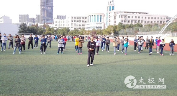 | 2014年11月12日下午,为响应国家“武术进校园”的倡议,促进大学生的身心健康,富光•世清太极应安徽省合肥市建筑工业大学邀请,为大学生们教授陈氏太极拳养生精要十八式,分四个班共一百七十多名学生,由富光•世清太极教练员周斐,张志静,方霞,倪良宝任教,馆长倪世清亲自指导,并示范讲解拆招解招。为了让大家学习更有兴趣,各班将在学习结束后展开太极拳竞赛活动,充分调动了大家学习的热情 ,最后,倪世清鼓励大学生们坚持学好中国这一传统文化瑰宝——太极拳,将我国的国粹世代传承。 |