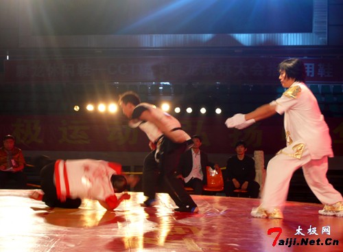 山东菏泽洪式太极军团 经过3天紧张而激烈的争夺,2008中央电视台“康龙武林大会”马鞍山市朝辉杯陈式太极拳全国选拔赛,10月27日下午在马鞍山市市体育馆闭幕。