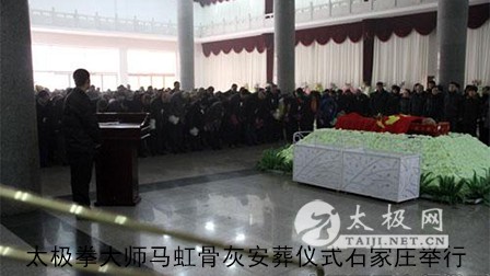 2014年12月21日上午,著名国际太极拳大师马虹先生的骨灰安葬仪式在石家庄龙凤苑举行。马虹先生的亲属以及从新疆、吉林、香港等全国各地专程赶来的弟子共200多人参加了仪式。 马虹,生于1927年,于 2013年12月22日逝世,享年86岁。这对于40多岁时提着暖水瓶上三楼还要休息两次的马老来说,是太极拳创造了他的生命奇迹。 这天,石家庄难得的晴空丽日,在阳光的照射下,龙凤苑显得肃穆庄严。这是石家庄市依山傍水而建的一座公墓。青松翠柏中,一排排安静的墓碑依山排列,马虹大师的骨灰将安葬于凤山阳坡较为中间的位置。 骨灰安葬仪式前,众弟子在寒风中列队,迎接恩师的骨灰,并含泪呼唤着师父。公墓大殿前,简短而又隆重的追思祭奠仪式后,200多名弟子,在沿山而上的台阶间的三个大平台上,集体表演太极拳告慰师父,然后行跪拜大礼为师父送行。 北风呜咽,百鸟闭鸣,送葬的人群手捧傲霜抗寒的菊花,在“师父!走好!”深情而悲切的呼唤中,缓步拾阶而上,将马虹先生送到了他永久安归的福地。 或许天意,也许巧合。时日,石家庄上空,天难得的湛蓝湛蓝,仪式举行前,天空丝云不挂,直到安葬马虹先生骨灰的时刻,天空出现了片朵白云。骨灰安葬后,几朵白云在太阳旁一左一右,短时间呈现出了龙凤形状。这奇异的天象,令所有在场的人仰天惊喜,他们认为,是师父的德风感动了长天,给了今天的好天气,并在龙凤山上空呈现了龙凤呈祥的天象。 为纪念马虹先生逝世一周年,他的弟子们经过3个月的紧张准备,编辑出版的《为而不争著华章》一书,当日与大家见面。这本书登载了马老的弟子们回忆与恩师相处并深得恩诲的文章,讴歌了这位格外令人尊敬的老人及他所留下的在太极拳界有着很大启迪意义的“马虹精神”。石家庄市的相关领导及一些知名人士为本书题词;原温县体育局局长原福全和现任局长宋明军分别为本书作序,回忆、总结和评价了马虹先生令人敬仰的一生及其精神。 仪式结束后,在马虹先生家属举行的答谢宴会上,师母告诫众弟子,要遵循马虹先生生前的教导,“练拳练心练人格,教拳交心交朋友”,把太极拳文化传承好,造福人民。 通过参加本次仪式,记者又一次目睹了马虹先生教导出的弟子们的团结友爱的品德与高尚文明的素质,体会到了他们所弘扬传承的马虹精神。 |