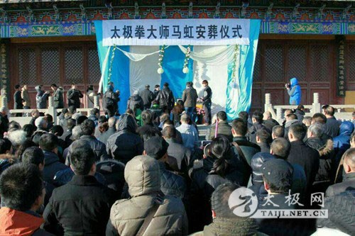 2014年12月21日上午,著名国际太极拳大师马虹先生的骨灰安葬仪式在石家庄龙凤苑举行。马虹先生的亲属和专程从新疆、吉林、香港等全国各地赶来的弟子共200多人参加了仪式。 天空祥云,龙凤呈祥 马虹先生生于1927年, 2013年12月22日逝世,享年86岁。这对于40多岁时提着暖水瓶上三楼还要休息两次的马老来说,是太极拳创造了他的生命奇迹。 这天,石家庄难得的晴空丽日,在蓝天中阳光的照射下,龙凤苑显得肃穆庄严。这是石家庄市依山傍水而建的一座公墓。青松翠柏中,一排排安静的墓碑依山排列,马虹大师的骨灰将安葬于凤山阳坡较为中间的位置。 骨灰安葬仪式前,众弟子在寒风中列队,迎接恩师的骨灰,并含泪呼唤着师父。公墓大殿前,简短而又隆重的追思祭奠仪式后,200多名弟子,在沿山而上的台阶间的三个大平台上,集体表演太极拳告慰师父,然后行跪拜大礼为师父送行。 北风呜咽,百鸟闭鸣,送葬的人群手捧傲霜抗寒的菊花,在“师父!走好!”深情而悲切的呼唤中,缓步拾阶而上,将马虹先生送到了他永久安归的福地。 或许天意,也许巧合。是日,石家庄上空,天难得的湛蓝湛蓝,仪式举行前,天空丝云不挂,直到安葬马虹先生骨灰的时刻,天空出现了片朵白云。骨灰安葬后,几朵白云在太阳旁一左一右,短时间呈现出了龙凤形状。这奇异的天象,令所有在场的人仰天惊喜,他们认为,是师父的德风感动了长天,给了今天的好天气,并在龙凤山上空呈现了龙凤呈祥的天象。 为纪念马虹先生逝世一周年,他的弟子们经过3个月的紧张准备,编辑出版的《为而不争著华章》一书,当日与大家见面。这本书登载了马老的弟子们回忆与恩师相处并深得恩诲的文章,讴歌了这位格外令人尊敬的老人及他所留下的在太极拳界有着很大启迪意义的“马虹精神”。河北省、石家庄市的有关领导及一些知名人士,为本书题词;原温县体育局局长、中国国际太极拳网总编原福全和现任温县体育局长宋明军,分别为本书作序,回忆、总结和评价了马虹先生令人敬仰的一生及其精神。 仪式结束后,在马虹先生家属举行的答谢宴会上,师母告诫众弟子,要遵循马虹先生生前的教导,“练拳练心练人格,教拳交心交朋友”,把太极拳文化传承好,造福人民。 通过参加本次仪式,记者又一次目睹了马虹先生教导出的弟子们的团结友爱的品德与高尚文明的素质,体会到了他们所弘扬传承的马虹精神。 |