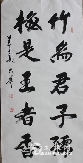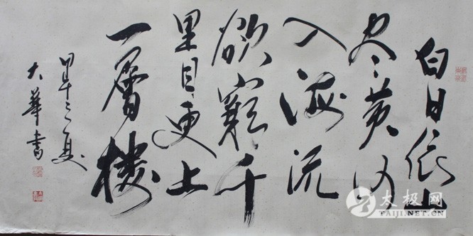 元旦前夕,浙商宇风集团邀请我国著名书画艺术家、中国太极书法第一人、中华陈氏太极拳第十一代传承人史大华来到钟祥“传播陈氏太极,弘扬翰墨精神”,记者在乡兄麻胜勇的引见下,采访了“创立太极书法,传承中华文化”的艺术大家史大华先生。 当记者亲眼见到史大华在钟祥“迎新年金都之夜”的舞台上,表演的那一招一式的太极拳法,娴熟得犹如行云流水,气吞山河。在阴阳互为之中,凸显出刚柔相济之风范,整个精气神表现得令人五体投地,羸得台下一阵阵掌声。更让人叫绝的是他挥毫的太极书法更是刚劲雄健、飘逸流畅,气势磅礴,把中国传统书法上升到了一种全新的境界,吸引了观众的眼球。史大华“文武双全”,曾被海内外华人艺术界誉为“中国书坛一绝”。 中华太极拳与中国书法都是中华民族的“国粹”,植根于中国博大精深的传统文化,它曾激励了一代代中华儿女发愤图强,拼博进取,为实现中国梦,在国际舞台上大展宏图,传递正能量。 史大华是前不久刚在北京联合大学师范学院作了一场“千年书法、翰墨魅力、中国书法与传统国学“的讲座后,又应邀专程来到了历史文化名城、帝王之乡的钟祥。他在钟祥停留了三天,参观了世界文化遗产明显陵,在莫愁湖边表演了太极书法,品尝了钟祥地域特色的盘龙菜。他说:“钟祥历史悠久,文化深厚,给我的印象太深了。明显陵、莫愁湖、盘龙菜等都是楚文化不可再生的资源,应该继续发扬光大,走向世界。” 史大华与记者同生于上世纪五十年代,看上去他比实际年龄显得年轻许多。他习惯戴着一幅眼镜,举手投足,浑身透着一股书卷气。他说话抑扬顿挫,条理清晰,思维敏捷,给人印象是一位颇有学问的文化人。当他运用太极功法挥毫书写中国书法时,才真正让人领悟到了他那深厚的中华文化功底。 据与史大华交往了二十多年的麻胜勇介绍,史大华是一个有毅力、肯钻研的艺术家。他在中华太极拳和中国书画艺术方面所取得的成就早已享誉海内外。作为中国陈家沟陈氏太极拳第十一代传承人,他是中国温县陈氏太极拳研究院研究员、中国陈家沟陈氏太极拳高级拳师、中国陈家沟陈氏太极拳形象大使。如今,他拥有诸多头衔——文化部中国国际书画艺术研究会员、中国国家书法家协会副主席、中国国家美术家协会常务理事、中国当代名人书画院常务副院长、中国书画专刊艺术顾问、世界书画艺术家联合会执行主席、中国书画艺术家协会执行主席、中国太极缘书画院院长。 史大华从小生长在河南太极拳之乡,受中华太极拳文化的影响颇深。而今天的河南省温县陈家沟曾是中华太极拳的发祥地。据史料记载,明朝洪武年间,山西泽州人陈卜迁至河南省温县境内的一座小山村,因村中有一条南北走向的深沟,随陈氏人丁繁衍,该村因此更名为“陈家沟”。始祖陈卜,耕读之余,而以阴阳开合运转周身者教于孙以消化饮食之法,理根太极,故名太极拳。 孩提时代,史大华在陈氏前辈们的熏陶下开始习武,学打太极拳,后拜太极大师第十代传承人陈长虹为师,系统地掌握了太极推手拳法。他每天闻鸡起舞,习武太极拳,五十多年来从未间断。青少年时代,史大华在练太极拳的同时极其崇尚中华文明的“国粹”艺术,尤其钟情书画艺术,长年刻苦坚持临摹古今名人碑帖字画。他习书作画,曾得到中国书画界多位大师的悉心指导。史大华精心研习中国书法绘画40余载,临摹过现代绘画名家齐白石画的虾,临帖过王羲之、颜真卿、柳公权等历代书法名家的字体。他博采众长,兼收并蓄,灵活运用,把太极拳法与中国书法相融合,形成了自己独特的“史书体”,成为中华太极书法的第一人。他尤精画虾,擅长楷书、隶书、行书、篆书,其书法点画俊秀,方园浑然、疏密相间,朴实厚重,气势严谨,飘逸流畅,行笔自然。 史大华深知中国书画与武术为中华民族的“国粹”,并将两大“国粹”文化融会贯通、相辅相成。他发挥自己的天赋与灵气,经过自己不懈的努力,终于独创出了具有爱国情结和特殊韵味的太极书法。史大华常说,中国的传统文化强调“柔生刚”,中国武术通过运气方能产生千钧的力量,从而打出的拳头很有力量,才能克敌制胜。而中国书画通过运用兽毛做出柔软的笔头,方能够将书画者的气力很好地表现出来。写出的字,画出的画,方能力透纸背,给人一种巨大视觉冲击力。史大华的成功尝试证明,中国书画与武术的绝妙融合,体现了中国的传统文化之博大精深,所产生出来的艺术魅力足以称誉世界。 史大华运用太极拳法习书作画,兼收古代名家之法,追求随意自然,又融入自己的审美情趣,赋予所擅书绘画的作品一个新视觉,一个新生命。他不图名利,乐善好施,热情好客,为人大度,随心所作皆成佳品,深受书画艺术界同仁称道。多幅太极书法及绘画作品传播海外,先后被英国,美国,加拿大,马来西亚,日本、韩国、新加坡等国家和地区的多家机构、各美术馆、博物馆及知名人士珍藏。 当记者问到史大华为何能把太极拳与中国书法结合的炉火纯青时,他欣然地回答:书法早于太极拳问世中华,它是汉字的书写艺术。汉字在漫长的演变发展的历史长河中,它屹立于世界艺术之林。一方面起着思想交流、文化继承等重要的社会作用,另一方面它本身又形成了一种独特的造型艺术。虽然书法艺术的自觉化至东汉末年才发生,但书法艺术当与