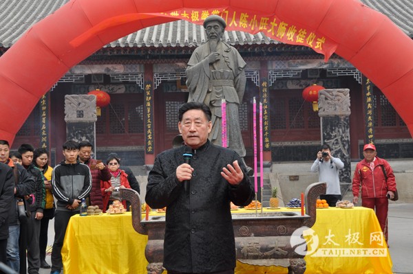 2015年3月15日上午,国家级非物质文化遗产代表性传承人、国际太极拳大师陈小旺收徒仪式在陈家沟太极拳祖祠隆重举行,来自世界各地的一百多名太极拳爱好者有幸成为陈小旺大师的入门弟子 此次拜师的弟子们,仰慕陈小旺拳艺多年,虔诚跪拜陈小旺大师门下;在拜师仪式现场,陈小旺大师身着黑色正装,正面而坐,百余名太极拳爱好者集体向陈小旺大师行拜师礼,并在陈小旺大师的带领下,一同向太极拳创始人陈王廷行叩拜大礼。 “礼仪虽然简短,但是意义深远,拜师以后我们的关系就近了一大步,大家进入陈家沟的大门,加入到太极拳的大家庭,就要师徒相敬相扶,同心协力,努力练习,尽快把太极拳传到千家万户,让更多的人享受到太极拳带来的好处。”陈小旺大师希望师徒携手共同努力来完成传播太极拳的夙愿。 此次仪式由陈家沟太极拳学校总教练陈自强主持。 |