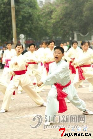 | 太极拳表演。梁长其 摄 在不少人眼中,练太极拳似乎只是城里人的爱好,但在新会乡镇,不少农民也跟城里人一样,掀起了学习太极拳的热潮。12月23日上午,来自新会双水、司前、古井镇的6支队伍在“迎奥运新会区太极拳大汇演”中打起了太极拳,成为了当日大汇演中的一道亮丽风景线。 记者在现场看到,新会区太极拳协会的会员拳友首先集体演练了一套24式简化太极拳,随后各队轮流表演了南拳、杨式太极扇、中国功夫扇、养生太极掌等节目,这吸引了众多市民的围观。记者注意到,现场表演的除了大人外,还有10多名只有十几岁乃至几岁的小会员,他们打起太极拳时也有板有眼。 据介绍,新会区太极拳协会始建于2002年,由江门市太极拳联谊会新会队发展而来。2007年5月,在新会区体育局、民政局的大力支持下,新会区太极拳协会正式成立,独立自主地在新会区开展活动。目前,该协会已发展队伍12支,会员拳友近400人。从2006年开始,该协会积极开展太极拳的普及工作,两年来,在城区和乡镇先后举办了15期义务培训班,越来越多的农民喜欢上了太极拳。目前,司前、双水、古井三个中心镇共有6支太极队加入该协会,人数已达到180多人。 |