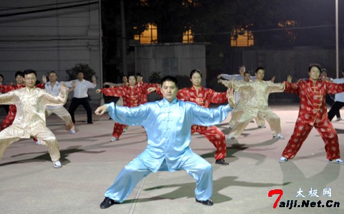 陈志强师傅带领大家练习太极拳 2005年出于一个偶然的机会,我开始学习陈氏太极拳,从此迷上了太极拳。结合我自己和拳友的体会,感觉太极拳确实是一样好东西,心想不光自己要学好,而且要大力推广,让更多的人享受太极拳——我想这也是弘扬太极文化的善举。2007年年初,我们单位东莞海关成立了太极拳俱乐部,实现会员制,吸收了很多会员,外请老师来上课,开始教授陈氏太极拳老架一路。第一期培训班效果不是很好,一开始人比较多,但越来越少,最后只有几人学会了整个套路。我感到很纳闷――好东西怎么这么难推广呢?