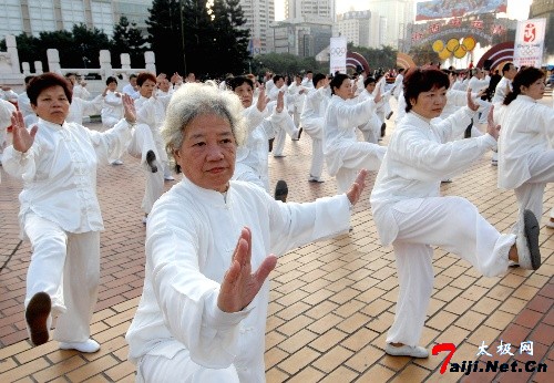 福州,2008年1月1日 (体育)榕城老人健身迎奥运 1月1日,老人们在福州五一广场表演太极拳。当日,福州市数百名老人来到福州五一广场,用体育健身的形式庆新年和迎接2008年北京奥运会的到来。 新华社记者张国俊摄