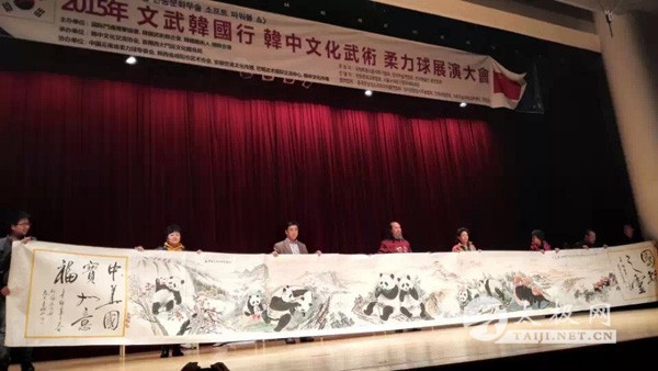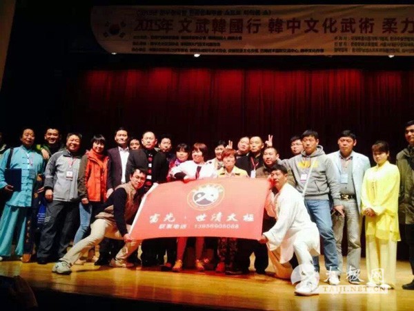 2015年4月8日中韩文化交流在首尔市隆重举行,富光世清太极馆长倪世清和富光实业总经理钱玉兰女士应韩中文化交流委员会邀请致辞并剪彩。 通过此次大会增进了二国人民友谊,韩中二国各自表演了武术,跆拳道,书画,相互赠送国礼以及民间传统文艺。 |