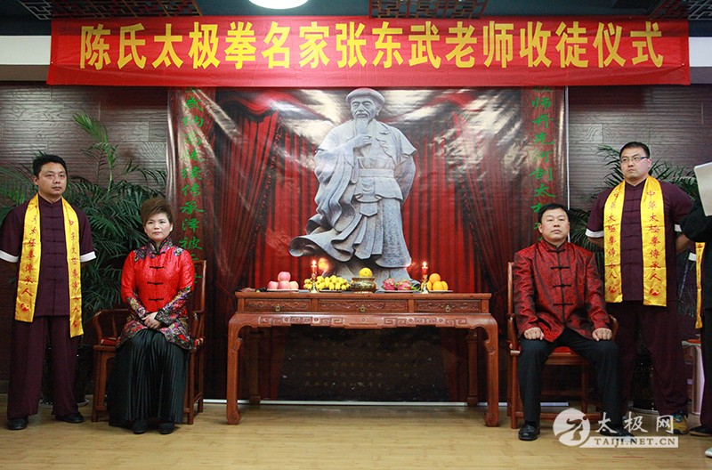 2015年5月2日晚上,陈氏太极拳名家张东武老师收徒仪式在郑州东武太极研修院经开区太极馆举行。 张东武老师,中国武术七段,国家一级拳师,国际太极拳年会"太极十杰"之一、中华太极拳杰出传承人、国际太极拳文化传播大使,1970年生于河南省温县,自幼习武,是中国陈家沟陈氏十九世、太极拳第十一代嫡宗传人陈正雷大师的入室弟子。他的功夫纯正,技术全面,对陈氏太极拳教学训练及实战技法有独到的见解。现任郑州东武太极研修院院长、法国张东武太极学院首席总监、香港陈式太极拳总会副主席、河南陈式太极拳协会副秘书长兼技术培训部主任、焦作市陈式太极拳协会副会长、河南东武太极文化传播有限公司总经理。 在拜师收徒仪式上,张东武为陈氏太极拳祖师上香,随后,24名弟子各自递呈拜师帖,并向恩师行拜师大礼。随后老弟子带领新入门弟子宣誓,由见证人代表刘洪奇先生致辞,接着嘉宾代表讲话,对新入门弟子表示祝贺并提出勉励;新入门弟子代表发言,表达了对恩师的感谢和传承太极的决心。然后张东武老师带新入门弟子向太极祖师行跪拜礼并向各位弟子讲解门规戒律,希望大家一起为陈氏太极拳的传承发展共同努力,最后张东武老师和嘉宾见证人以及新老弟子集体合影。 新入门弟子名单:王 征 杨 敏 范凤娥 王素芹 青木和平 吴建国 沙文山 王林广 罗从国 甄银辉 熊夫圣 马 超 张建康 李新射 王开祥 胡民杰 唐亚林 张 超 贾文盛 陈玉青 贺子斌 刘建军 王 雨 张剑波 |