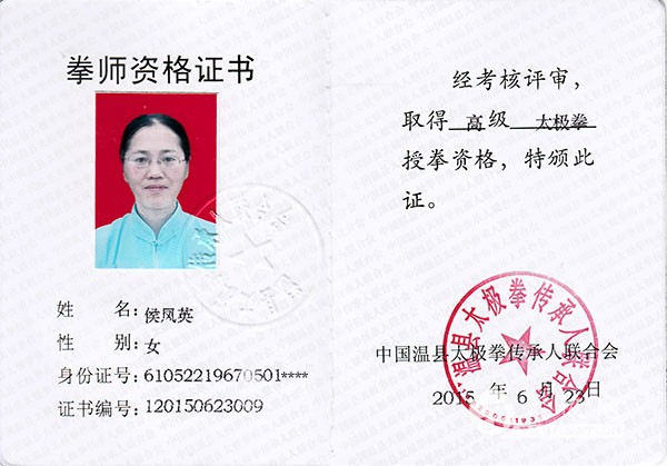侯凤英,女,1967年5月出生,陕西潼关人,从小体弱,但喜欢体育锻炼,1994年开始在广场学习国家规定套路24式太极拳,从此与太极拳结下了不解之缘,坚持练拳不断,2000年5月到三门峡西铁路医院学习针灸时,认识了三门峡太极拳协会会长刘跃贤老师,跟随其学习老架一路并推手,师傅细心指导,我每天坚持打拳超过10遍,经过了四年的苦练,我的身体变得格外健康,耐力超于常人。 2004年正式拜在陈氏小架第十一代正宗传人赵学法大师名下,跟随学习小架套路及推手,后又学习了剑,棍,杖等器械。赵师德高望重,武艺精湛,从小习武,聪明好学,深得师傅真传,在年轻时已功夫了得,经常与人切磋交流,屡战屡胜,在渭北,秦东一代久负盛名。又经过几十年揣摩体悟,深得陈氏小架之精髓,拳术更加成熟。能跟他学拳,也是三生有幸。经过他精雕细凿的指点,使我对太极拳有了更深一层的认识,更进一步的提高。 对太极拳的爱好使我们十几年来不管刮风下雨,数九寒天都坚持早晚到广场练拳并相互推手,真是受益非浅。多年来我每天都坚持站桩,坐禅四个小时,在师傅的精心指导下,我内外双修,更加感到太极拳的博大精深,威力无穷,走进门来, 堋捋挤按,采挒肘靠,拿发柔化,无穷的奥妙,无穷的乐趣,尽在不言中。每天都乐此不疲,融在其中。为了继承祖国的传统武学,我决心把师傅所教的太极拳传承下去,发扬广大。 侯凤英拳照 |