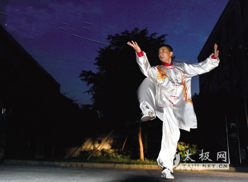 基本功学到老练到老,黄峰觉得太极学得越深入,对基本功的要求就要越扎实。     太极的爆发力在瞬间点燃。     白天忙工作,黄峰大多在晚上练。     武馆是热爱太极人士的快乐殿堂。     在桐乡市民广场演出中,黄峰一丝不苟,他要把最好的太极功夫传播出去。     梅雨江南,空气潮湿得能滴出水来。     傍晚时分,桐乡城西一处旧车间改造的武术馆里,一名中年汉子着一身黑色练功服,一套陈式太极演绎得行云流水。     时间仿佛停滞,绵柔的拳法突然爆发,几声呐喊,逼人的英气四散开来。     亦柔亦刚,一静一动,一招一式间尽显太极大师风范。     今年50岁的黄峰是桐乡市武术协会副会长,“江湖”人称“黄药师”。     黄峰,桐乡乌镇人,18岁开始拜师学习传统武术,过人的运动天赋,极好的跑跳能力,让他成了学校里出名的体育健儿。     32年的学武经历,黄峰从民间武术高手辈出的乌镇走出来,用他自己的话来说,他遇到了一个又一个好师傅,他们教会他的是一份对武术永无止境的追求。     18岁的黄峰由武术启蒙老师胡奇云领进了门,从长拳到套路拳再到刀剑……他一学就会,而且像模像样。“悟性好,是块练武的料。”这是老师对他的评价。     从1986年开始,黄峰开始参加县、市和浙江省的各种武术比赛,年青有为的他摘金夺银,很快就在武术圈崭露头角。     2006年,黄峰的武术进入了一个新境界,他在省第七届太极拳械比赛和省十三届运动会太极拳械冠军大奖赛中,总共摘得8金3银,声震浙江武术界。     这年夏天,黄峰循着陈式太极拳的脉搏,来到了河南温县陈家沟,拜访了享誉国际的太极大师王西安,拜入王大师的门下。在大师的点拨下,黄峰茅塞顿开,真正领悟到了太极的真谛,进入到了另外一个全新的太极世界。     回到桐乡,诸多荣誉加身的黄峰把所有的名和利抛开,他决定从零开始,向太极神殿进发。“认准了一件事,就要做到极致。”这是黄峰的人生信条,他一步一个脚印,感悟太极,从最基本的马步做起,一招一式感受太极。     在黄峰的感受中,太极是做人的方式,追求的是阴阳间的平衡,人生无处不太极,生活中的点点滴滴都蕴含着太极的意境。黄峰说,“我打一套拳要20多分钟,太极讲求的是慢、平和,练拳练快不难练慢很难,能磨练一个人的心性心态。”太极所追求的是阴阳平衡,求平和求气息,以平和平静不浮躁的心态待人处世。慢慢的,在太极的影响下随着功夫的深入,脾气也越来越好,心态也越来越平和。     黄峰的武术馆里,年轻人居多,在许多长者的眼里,这些年轻人提前进入了退休养老的锻炼状态,可是黄峰却不这么认为,这是对太极理解的一个误区,今天的太极已经完全不是人们想象中的老年体操,它是时尚的、符合现代社会健康的最佳运动项目。     推广太极,让更多的人感受太极的魅力,享受太极带来的健康和快乐,黄峰一直在努力。 黄峰拳照  |