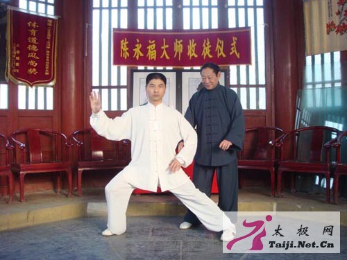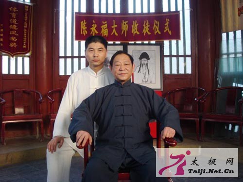 弟子阎安递拜师帖 陈永福老师系陈氏第二十世、陈氏太极拳第十二代传人、西安武术协会委员、西安市萃华武馆馆长。2006年被中国武术协会评定为中国传统武术陈氏太极拳小架代表人物之一,并被邀请拍摄了全国武术收藏教学系列片。陈永福老师弟子遍及海内外,众多弟子在各级武术大赛中夺金摘银,并在全国各地开设多家武术分馆。 阳春三月,春光明媚,鲜花盛开,陈永福老师又收新徙阎安和赵志忠。3月9日上午,收徒仪式在西安萃华武馆内举行,众多武术同仁和弟子见证了这一时刻。仪式由武馆秘书长职宝贵先生主持,过程按照传统武术拜师仪式进行,由烧香拜祖开始,弟子递帖、递茶、磕头,师父签字回帖并赠宝剑一把。最后陈永福老师给弟子训话时强调:为继承和弘扬太极文化要勤学苦练,细心揣摩,一滴汗水一层功夫。