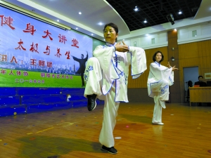 王阿斌弟子现场展示杨式二十七式太极拳。 王阿斌开讲。 3月19日上午,杨式太极拳第七代传人王阿斌做客我市“科学健身大讲堂”,为广大健身爱好者上了一堂生动的太极拳课。据了解,此次活动是由铜陵市武术协会、市老年人体育协会等联合举办,市150多名健身爱好者参与其中。 讲座中,王阿斌围绕“太极与养生”话题,介绍了太极拳的由来、特点、练习的基本要求,以及练习时的注意事项。太极拳不仅是肢体运动,更囊括了心、意、气、力等内涵,长期习练对人体特别有好处。当日,现场还进行了太极拳展示,王阿斌就广大健身爱好者在习练太极拳过程中遇到的问题一一进行剖析。 王阿斌,1976年开始习武,曾习练通背拳、长拳、拳击,于2007年转学太极,先后师从太极名师刘玉兰和王守挺,精通杨式太极拳各式传统套路及竞赛套路,现任浙江省武术协会钱塘武学钱江养生太极拳队队长兼总教练,曾多次带团参与国际、国内各类武术比赛。 |