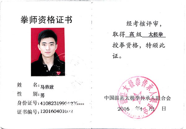 马弟致,男,汉族,太极故乡河南省焦作人,中国共产党员, 陈氏第二十一世太极拳正宗传人 国家一级拳师 国家二级裁判 中国武术六段 中国武术协会会员 国家段位制指导员 国家段位制考评员 陈自强大师入室弟子 中华太极拳非物质文化遗产传承人 陈家沟陈氏太极拳协会理事 陈家沟陈氏太极拳协会苏州分会副会长兼总教练, 国际太极拳高级教练 中华太极拳高级拳师 全国太极拳比赛冠军 国际太极拳比赛冠军 陈家沟太极拳学校主教练 焦作太极中专学校客座教授 曾被多次被中新置地公司、维益食品公司苏州分公司、法国EMBA商学院苏州分院、渤海银行苏州分行、飞利浦上海分公司、苏州怡养老年公寓、星海实验学校等多家单位聘请为太极拳老师、太极拳顾问,并多次应邀参加苏州电视台节目录制和采访。 马弟致,自幼喜爱武术,跟随家父练习武术基本功及太极拳套路,由于对太极拳的由衷喜爱,从小就来到陈家沟太极拳学校学习正宗陈氏太极拳,后拜在陈自强老师门下,并受师父陈自强(陈氏太极拳新领军人物、陈家沟太极拳学校副校长兼总教练)与师爷陈小星、陈小旺等多位大师的悉心指导和教诲,严格要求自己,勤学苦练,逐渐掌握了陈氏太极拳的套路、器械、推手技击和拳术理论,并多次获得国际、国家级、省级、市级比赛的冠军。在陈家沟太极拳学校和国内各地授拳多年,学员多不胜数,受到各地学员好评。多年来的教学经验让自己掌握了一套独特的教学方法。 使其对太极拳的理论研究具有独特的见解。是陈家沟新生代的太极拳杰出代表人物之一,为太极拳推广事业做出了积极的贡献。 ·2007年参加中国温县陈家沟国际太极拳邀请赛荣获传统套路、单剑第一名。 ·2007年参加焦作国际太极拳年会荣获男子推手56公斤级冠军。 ·2007年参加河南省太极拳剑推手锦标赛荣获男子推手56公斤级冠军。 ·2008年中国温县陈家沟太极拳邀请赛荣获男子传统套路、太极单刀第一名。 ·2009年参加河南省焦作国际太极拳交流大赛荣获男子56公斤级推手冠军。 ·2011年8月参加第六届中国焦作国际太极拳交流大赛,荣获传统套路一等奖,男子枪术二等奖。 ·2012年8月参加首届中国陈家沟陈氏太极拳国际交流大赛,荣获男子套路金牌,春秋大刀金牌。 ·2013年5月参加全国武术太极拳比赛,荣获男子套路第一名。 ·2013年8月被焦作太极中专学校荣誉聘请为 “客座教授”。 ·2014年7月被“中华武术产业”杂志武术名家栏目收录。 ·2014年8月应邀参加“苏州电视台文化生活频道”节目的太极录制。 ·2014年9月被中国邮政集邮中心 “传递正能量,共筑中国梦”纪念珍藏邮册,人物邮票专栏特邀收录出版并发行。 ·2014年8月应邀参加“苏州电视台文化生活频道”节目组的太极录制并现场让观众体验太极功夫。 ·2014年12月应邀参加“苏州电视台天天时尚“节目组采访并让主持人现场感受太极功夫。 ·2015年10月在金鸡湖边接受“苏州电视台社会经济频道”太极新闻采访。 ·2016年1月应“TMCC太极格斗国际精英赛”赛事组之邀担任裁判。 现任陈家沟陈氏太极拳协会苏州分会副会长兼总教练 个人微信:madizhi 电话:15850336331 微博:@陈家沟太极拳-马弟致 马弟致拳照 |