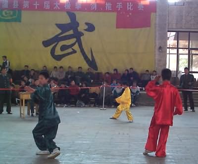 | 温县第十届太极拳、剑、推手比赛今天中午在温县太极武术馆拉开帷幕,来自温县各武术馆校、团体、个人共200余人参加了此次比赛。参赛选手年龄最大的六十多岁,最小的只有六岁。本次比赛将进行三天时间,于4月5日结束。由于温县是太极拳的发源地,所以一年一度的比赛也吸引了不少外地的太极拳爱好者前来观摩、学习、交流。