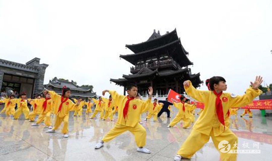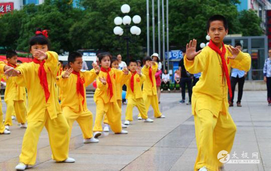 图为小学生在象山公园表演“太极快闪”行为艺术