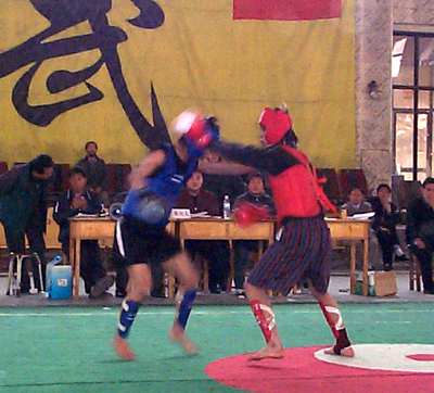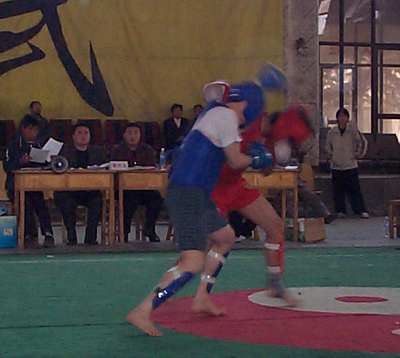 | 温县第二届散打比赛今天中午在温县太极武术馆举行,陈家沟太极拳学校、陈家沟武术院、温县少林太极武校、朱老虎太极功夫院等20余名运动员参加了比赛,本次比赛由温县体育局主办,旨在探索太极散手与现行散打规则的结合点,相信在实践中太极散手会走向散打擂台。