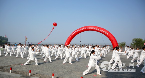 众人在古堰蒋坝进行太极拳表演 陈亮摄影