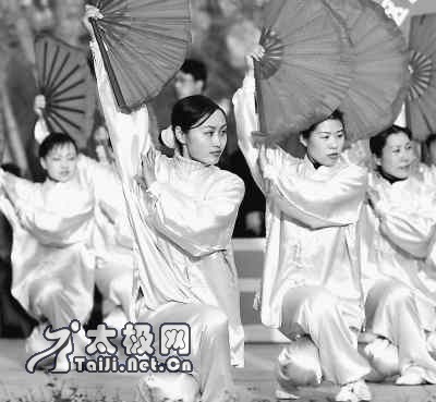 近日,河南省焦作市的一些青年妇女在人民公园练习太极扇。据统计,焦作市的太极拳习练者已逾百万,不仅展示了太极拳发源地的风采,而且推动了该市全民健身运动的开展。