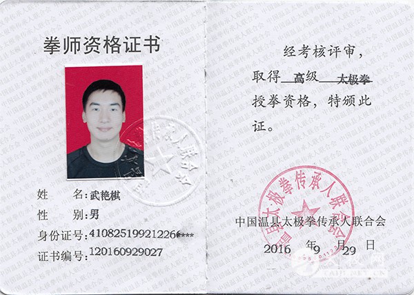 武艳棋,陈家沟陈氏十九世太极拳嫡宗传人、太极拳“八大天王”之一陈志强老师入室弟子。生于1992年,河南省温县人,国家一级社会体育指导员、国家二级武术裁判、一级拳师、陈家沟太极拳研究会副秘书长、广州市花都区陈氏太极拳协会副会长、广州市陈志强太极拳推广中心主教练。