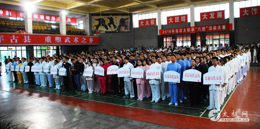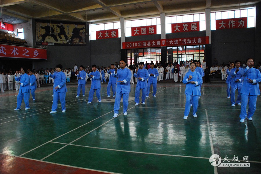 (太极网温县报道)2016年10月9日,正值九九重阳节,2016温县太极拳“六进”活动大赛在温县太极武术馆开幕。来自全县各乡镇、党政机关的近五十个队伍参加了此次大赛。 2016年3月温县县直机关工委下发了《关于在全县持续开展太极拳普及推广活动的通知》,就企事业单位开展太极拳演练工作进行部署;温县体育局于3月16日组织开展了2016年第一期社会体育指导员培训班;温县教育局组织精干力量全面推进温县中小学太极拳教材编写工作;全县太极拳“六进”活动大赛盛大开幕……一系列活动的开展,掀起了温县太极拳“六进”工作的高潮。 温县人民政府副县长李美玲女士在开幕式上讲话 为打造享誉世界的太极圣地,2016年,温县把太极拳“六进”工作作为重中之重。温县体育局和教育局分别组织科室骨干、太极名家、体育教师等全力开展中小学太极拳教材编写工作,并开展全县各中小学生太极拳达标验收,对太极拳教师持证上岗进行考核;积极整合全县教育资源,开办太极拳双艺学校,促进太极拳进校园。 同时,温县县直机关工委要求全县机关单位于3月中旬至4月底必须组织人员进行套路练习,力求每名干部职工能够掌握1~2套太极拳,每个单位参与习练人数不少于机关总人数的80%。工委严格要求,广大职工热情参与,成就了今日大赛的盛大开幕。 裁判员宣誓 裁判员为场上参赛队员认真打分 各机关单位代表队依次上场演练太极拳 责任编辑:刘明菁 |