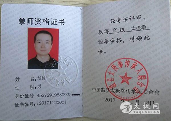 胡乾,男,生于1988年,自幼酷爱书法、写作、诗词、太极拳,毕业于中国政法大学刑法学专业(研究生)。拜师于朱天才门下学习太极拳。