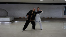 招术一,折拿虎尾 合步推手或散手实战,遇对方抓我右掌,欲绞臂锁拿;我梢节领劲肘定位,三节分家折腕转圜回抽,对方必被牵动引进,致对方掌背面予我,同时我左手迎上,与右手合握夹击,左手大拇指点按其“中白穴”附近,合劲反拿致对方疼痛难忍前跌。真是“一阴一阳护前胸,何惧狂夫抓手攻”【图1-1至图1-20】。 图1-1 图1-2 图1-3 图1-4 图1-5 图1-6 图1-7 图1-8 图1-9 图1-10 图1-11 图1-12