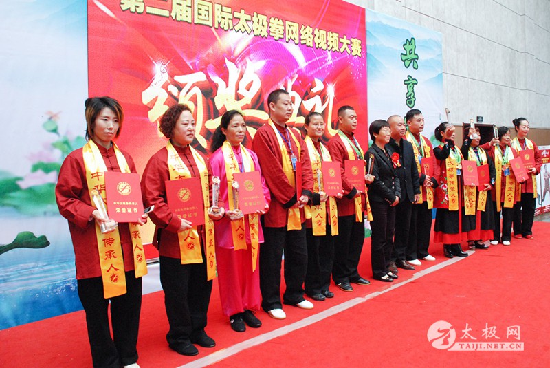 荣获“2016年度最美太极人”称号的有:陈庆峰、董丰电、侯发旺、杨昭、何登田、陈剑、王天琦、王建华、张辉、温元云、张勇刚、陈庆文、张芳、韩莉莉、马智萍、谢明、周志强、吴永萍、徐惠莹、杨延招、王本、刘磊、陈林、汤迎春、沐敬华、王静、张孝荣、骆宝钟、樊超、尚加莉、于敬之、张峰、王素方、蔡映红、田翠云、侯红卫、李大彬、王金耀、郭建新、王林广、马弟致等(名单含2015年度)。以及部分未能赶到命名仪式现场的获奖选手,恭贺所有获得“最美太极人”荣誉称号的选手! 最美太极人领奖 最美太极人领奖 最美太极人领奖 本次命名仪式还分别授予广东长安鸿信太极馆、福州陈式尊古太极拳馆、武式太极巢湖法院队等为2016年度最美太极团队。 最美太极团队领奖 在2016年度“最美太极人”的队伍中,董丰电、杨昭、何登田三位在2015年首届视频大赛中就曾获此殊荣,2016年再次参赛,视频质量、太极拳技法更上一层楼,成功蝉联该奖项,连续两年成为“最美太极人”!2015年度“最美太极人”陈庆峰、侯发旺、陈庆峰、周元睿、范伟、张世庆等也赶来参加颁奖典礼,充分彰显了视频大赛的传承发展魅力。 王天琦发表获奖感言 王天琦代表2016年度“最美太极人”发表获奖感言,她表示能够获得“最美太极人”的称号,一方面是对自己多年习练太极拳的肯定,另一方面也是对自己提出新的要求,时刻提醒自己背负的责任,要不断努力,为传播太极拳和弘扬太极文化做出自己的贡献,同时向本届视频大赛组委会表示感谢,感谢太极网为广大太极拳爱好者搭建了一个互相交流切磋的平台,为拳友们组织了一次太极人的“家庭大聚会”。 现场领奖集锦