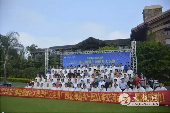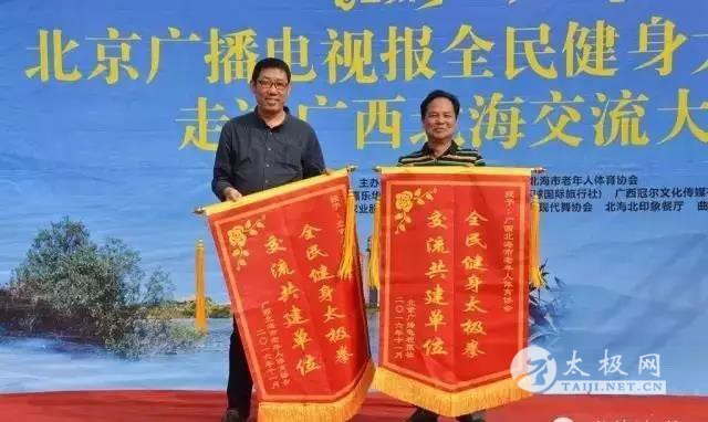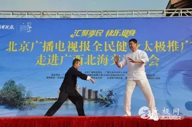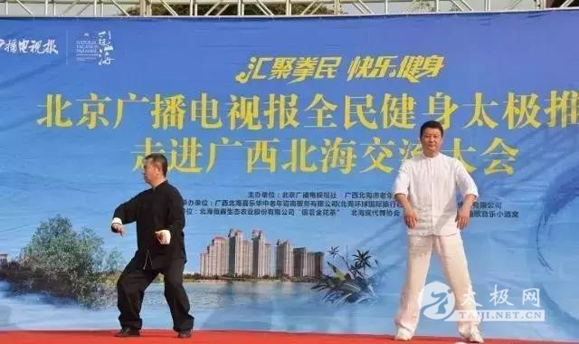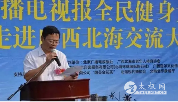 (太极网报道)11月8日上午,北京广播电视报社全民太极健身活动在广西北海拉开帷幕,本次活动旨在推进中国国粹太极拳在北海地区的传播,促进北海休闲、养生、旅游度假和养老等方面发展。 嘉宾席 据悉,本次活动期间是由北京广播电视报携手北海老年人体育协会和北海市嘉乐华老年人咨询服务有限公司共同举办的。活动期间,中国陈氏、杨氏太极弟子和部分北京的太极爱好者将通过此次交流活动与北海的太极爱好者切磋技艺,以便在全国推广太极运动。 北京广播电视报社副总编张毅致辞 北海市老体协常务副主席禤德科致辞 北京广播电视报社副总编张毅为本次活动致辞。北海市老体协常务副主席禤德科也发表了讲话。随后,世界陈小旺太极拳总会北京朝阳分会会长、陈家沟陈氏太极拳协会理事、北京广播电视报社“太极进社区”公益项目太极拳教练白安有,陈氏太极拳第十二代传人王西安大师弟子 北京市公安局刑侦总队特邀太极拳总教练 北京广播电视报社“太极进社区”公益项目太极拳教练宋剑进行了精彩的太极拳表演,赢得现场阵阵喝彩。 |