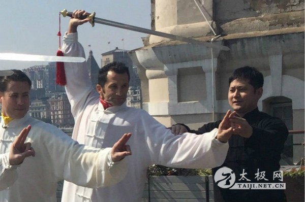 哈桑·萨利哈米季奇跟从上海申健太极拳馆馆长申小建学习太极剑