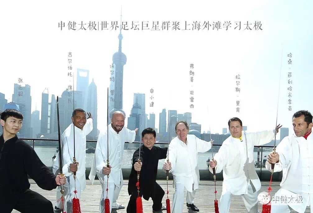来自AC米兰、多特蒙德、阿森纳、国际米兰的多位足球明星在外滩学习太极剑法 拜仁传奇球星哈桑·萨利哈米季奇2017年3月14日早晨来到上海外滩,跟从上海申健太极拳馆馆长申小建学习太极剑法。与其一起学习太极的还有来自AC米兰、多特蒙德、阿森纳、国际米兰的多位足球明星。 哈桑·萨利哈米季奇曾是德国豪门足球俱乐部拜仁慕尼黑队的传奇球星,在效力拜仁的9年时间里,他一共征战德甲216场,贡献了35个进球,协助俱乐部夺得6次德甲冠军,4次杯赛冠军以及丰田杯冠军等荣誉。2001年,他与队友一同夺得了欧洲冠军杯! 和哈桑·萨利哈米季奇一起来外滩学太极的还有著名球星吉尔伯托·席尔瓦,他曾帮助巴西在2002年世界杯中夺得冠军,并曾在阿森纳队效力,在与埃因霍温的一场比赛中开场20秒就获得进球,创下了当时欧洲冠军联赛历史上最快进球纪录。他还赢得了2004年英超联赛以及2003年和2005年的足总杯。参加太极训练的拉尔斯·里肯则是来自德国多特蒙德队的知名球星,而边上的沃尔特·曾加则是意大利足坛最成功的门将之一。 申小建系全国青年武术锦标赛陈氏太极拳冠军,陈家沟陈氏太极拳第13代传承人,其创立的上海申健太极拳馆目前已在上海开设有多处分馆,吸引了大批全球500强企业白领、金领学习太极。 来源:新民晚报新民网 本站编辑:太极网小田 |