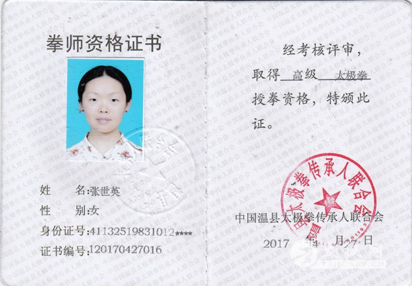 师从陈氏太极拳小架12代传承人王大昭老师,刻苦习练数载,系统地学习了陈氏太极拳小架1路、2路、单刀、单剑、春秋大刀、梨花枪夹白猿棍等诸般器械。为人谦虚好学,是老师“拳练万遍神理自现”的积极实践者。于2015年焦作第8届国际太极拳交流大赛上取得陈氏太极拳小架女子C组一等奖第一名的好成绩。 学拳之余任职于昆山萃华太极武术馆,教学经验丰富,所教学员下自6岁萌童,上至6旬阿公。身为教练其耐心、随和的性格和生动活泼的教学方式深受广大学员与家长们的爱戴好评,所教学员亦在国际太极拳交流大赛上取得不俗成绩。 热爱中国传统文化,对古琴、中医均有涉猎;能熟练使用日语、英语,粗通韩语,现以对外汉语老师身份定居澳大利亚,意欲继续发挥光和热,让太极之花扎根中华香飘海外。 |