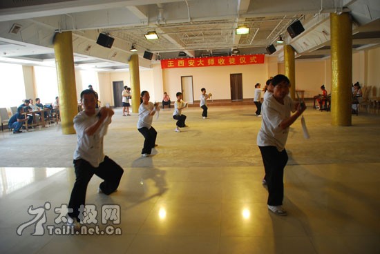 昨天上午,伴随着悠扬的古琴声,来自新乡、焦作等地的太极拳习练者、王西安拳法研究会的会员们,在帝苑大酒店养生馆进行了集体、器械表演,以他们特有的方式庆祝王西安大师喜收新徒。来自陕西宝鸡的太极拳协会副秘书长余郅铖习练陈式太极拳多年,非常热爱陈式太极拳,这次正式拜陈式太极拳“四大金刚”之一、国家级非物质文化遗产——陈式太极拳的首批传承人王西安为师,圆了多年梦想。 在拜师仪式上,余郅铖朗读拜师帖,并向王西安大师叩拜和递帖,王西安大师向余郅铖颁发传承书、入室弟子绶带和赠送著作,央视武林大会年度总冠军王战军和夫人樊晓辉作为见证人分别在传承书上签字和用印。 焦作陈式太极拳协会会长,曾任温县县长的阎文胜先生热情洋溢的主持了拜师仪式,温县体育局局长宋明军、文化局副局长严双军到会祝贺。陈家沟武术院、王西安拳法研究会新乡分会等分别向余郅铖赠送锦旗表示祝贺。   [page]