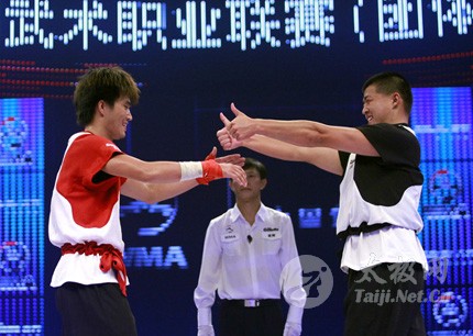 北京时间8月9日下午,首届WMA中国武术职业联赛团体赛次轮展开最后一场角逐,广州永侠在前四局和河北云飞战成2-2平,最后凭借“福将”郑辉在决胜局的出色发挥,以3-2力克对手。 目前在积分榜上,永侠以7分排名第二,云飞因小分劣势以3分位居第六。 广州永侠在揭幕战以4-1大胜山东兴武堂后一度领跑积分榜,唯一输掉的一局比赛中,本届WMA联赛身高第一的吴立汉也是因为犯规过多、技法表现不突出而被判负,三回合总分上,他甚至领先对手冷林。在第二轮的抽签仪式上,永侠老总、“苗翠花”陈永霞再度喊出“5-0”的口号。 而河北云飞则在首轮以1-4不敌目前排在积分榜首的青岛响虎,排名垫底。上一场比赛后,首发五名主力中的吴正凯因赛后犯规而被罚停一场,张树勇和杜雨濛则因伤无法继续比赛。“哀兵”出征的云飞俱乐部在本场比赛中派出了王帅、孔重喃和郭权等三名替补,希望以奇兵制胜。 首局比赛由苏勒得(永侠)对阵云飞第四替补郭权。苏勒得在揭幕战中与兴武堂的实力战将衣丰春打成9-9平,最后凭借对手的一次“劝告”险胜。而郭权作为云飞的第四替补,此次提前出场让他有些意外。大赛经验缺乏的他肩负着为云飞打响头炮的重任。 首回合,首次亮相的郭权用单鞭拿下WMA职业生涯的第1分!苏勒得回敬单鞭扳平比分。不过在双方的近身激战中,郭权发挥更加出色,以3-1领先结束首回合。 第2回合,苏勒得希望用体重优势施展摔技,但是郭权很聪明的降低重心通过缠抱抵挡对手的进攻。虽然是第一次亮相WMA的擂台,但是郭权毫无惧色的和对手拼摔技,几次尝试穿裆靠。次回合,郭权以4-1扩大领先优势。 第3回合,郭权继续用单鞭拿分,苏勒得尝试野马分鬃,不过未能有效击中。比赛只剩下1分钟,苏勒得单鞭拿下第2分,随后他又用掩手肱拳拿下第3分。不过郭权最终还是以5-3获胜!云飞俱乐部打响头炮! 第二局比赛由张彦飞(永侠)挑战吴书海(云飞)。这也是一局“以小打大”的比赛,张彦飞的体重比吴书海轻了32公斤,身高也低了16厘米。揭幕战中张彦飞压轴出场,最后在比分落后的情况下凭借对手受伤幸运获胜。而摔法出众的吴书海则在上一场对响虎的比赛中为云飞拿下宝贵一分。 本局比赛让人大跌眼镜,吴书海面对对手灵活的脚步移动完全无计可施,而张彦飞在移动中的进攻非常奏效,最后以10-1大胜。 [page] 第三局的对阵双方是永侠队长朱永龙和云飞第二替补孔重喃。永侠队长在揭幕战中的表现让人印象深刻,技法、移动和战术都十分出色,并且他还是主场作战。孔重喃虽然在体重上占据优势,但是大赛经验不足。 首回合,双方势均力敌,朱永龙连续用单鞭和左右分脚拿下两分,而孔重喃回敬左右分脚直接踢倒对手扳平比分。双方战成3-3结束首回合。 随后的比赛中,孔重喃逐渐暴露出经验不足的弱点,虽然凭借擅长的单鞭和左右分脚拿到多分,但是也收到一张黄牌送给对手1分。最终,朱永龙以9-7胜出。永侠成功反超大比分。 第四局比赛是本场比赛的焦点战。对阵双方是吴立汉(永侠)和本届WMA开赛以来第一个因犯满6次而被罚出场的张震(云飞)。双方的身高、体重同样相差悬殊,吴立汉比张震高19厘米、重20公斤。在两人各自的首场比赛中,吴立汉比分领先却被判负,而张震也是在比分一度领先的情况下犯满6次出局。 首回合,吴立汉开场后将对手击下擂台,不过因非规定技法动作未能得分。此后吴立汉连续单鞭先下2分,张震回敬掩手肱拳扳回1分。首回合战罢,吴立汉2-1领先。 第2回合,吴立汉的技法发挥十分出色,先用掩手肱拳拿下1分,随后又用单鞭连续得分,最后以5-2领先结束次回合。 第3回合,张震展开绝地反击,一上来就用左右分脚连续扳回2分,但是吴立汉仍以6-4领先。时间只剩下不到1分钟,吴立汉胜利在望,比赛却在此时峰回路转。由于击中对手禁击部位,吴立汉被警告一次,收到两张黄牌,张震得到2分!此时比赛结束,场上比分6-6平。张震因对手两张黄牌获胜! 前四局战罢,大比分来到了2-2平,最后一局成为全场比赛的决胜局。 压轴战由郑辉(永侠)对抗云飞第一替补王帅。郑辉堪称永侠“福将”,在揭幕战中他顶住巨大压力,以7-0零封对手,为永侠取得开门红,展现出强大的实力。 首回合比赛,上演处子秀的王帅以左右分脚拿下WMA职业生涯第1分!不过在随后的比赛中,王帅的体能下降非常严重,郑辉接管了比赛,不仅打出蹬一根、单鞭和左右分脚等技法,还使出了提手上势等高难度的摔技,最后以14-3轻松拿下决胜局的比赛。 这样,广州永侠以3-2逆转战胜河北云飞。 双方出场阵容及顺序 广州永侠:苏勒得、张彦飞、朱永龙、吴立汉、郑辉 河北云飞:郭权、吴书海、孔重喃、张震、王帅